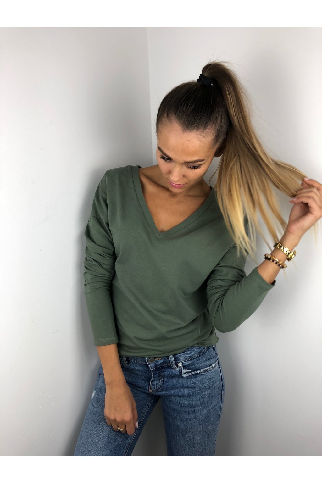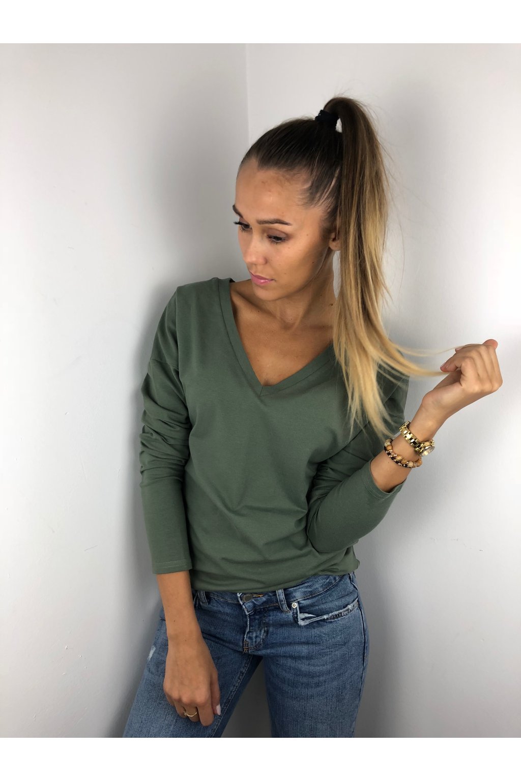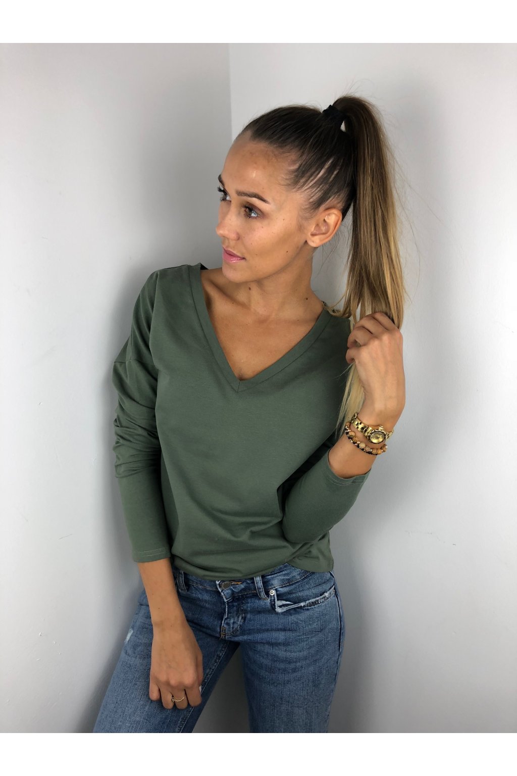 Dámské tričko Classical s dlouhým rukávem v barvě Khaki s lehkým výstřihem do V. Naprostá klasika, která nesmí chybět v žádném šatníku!