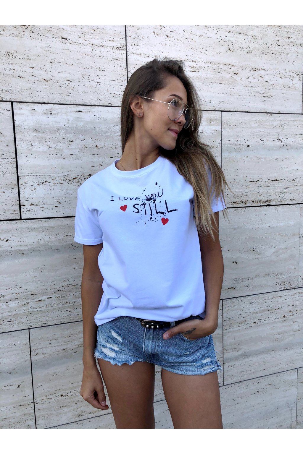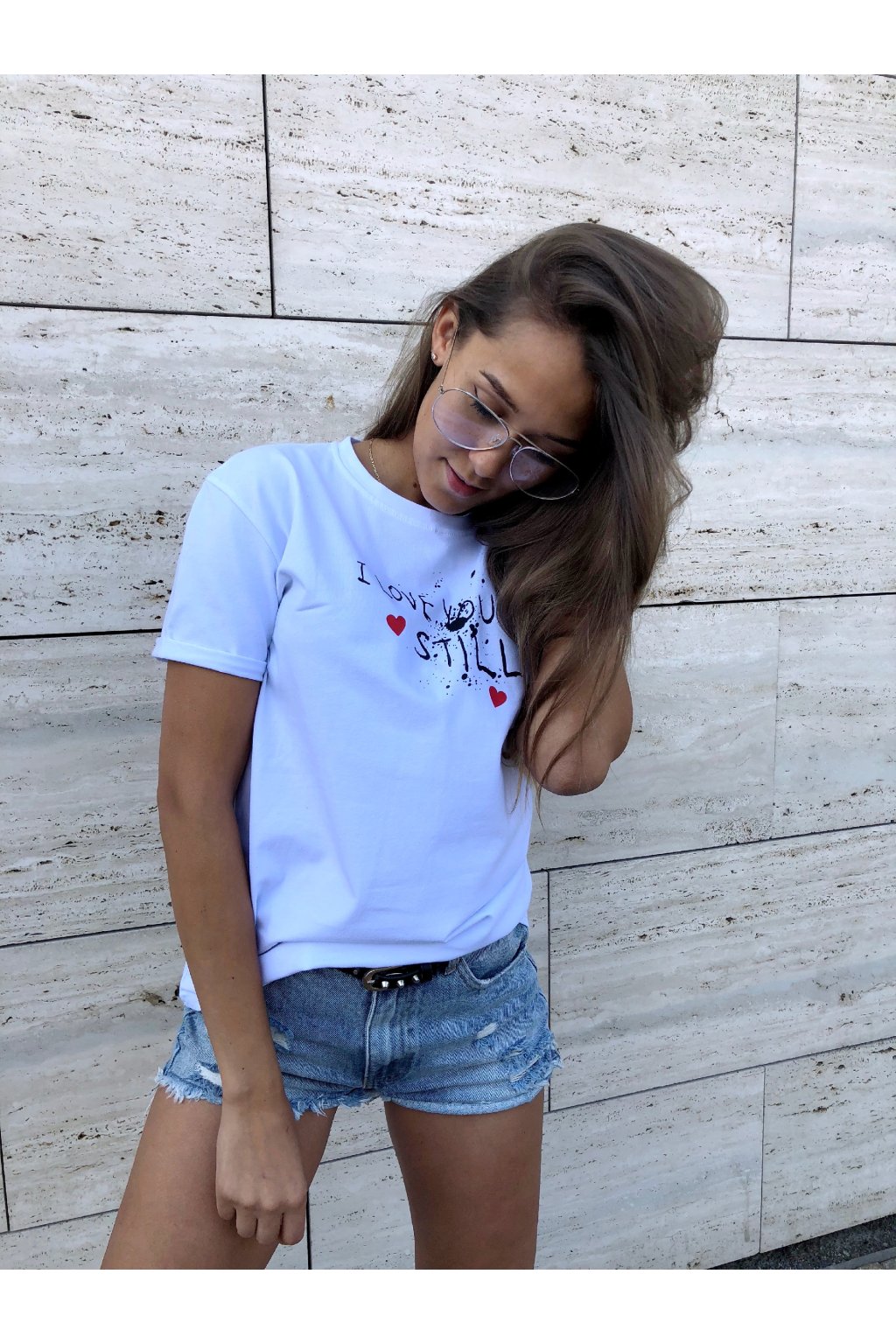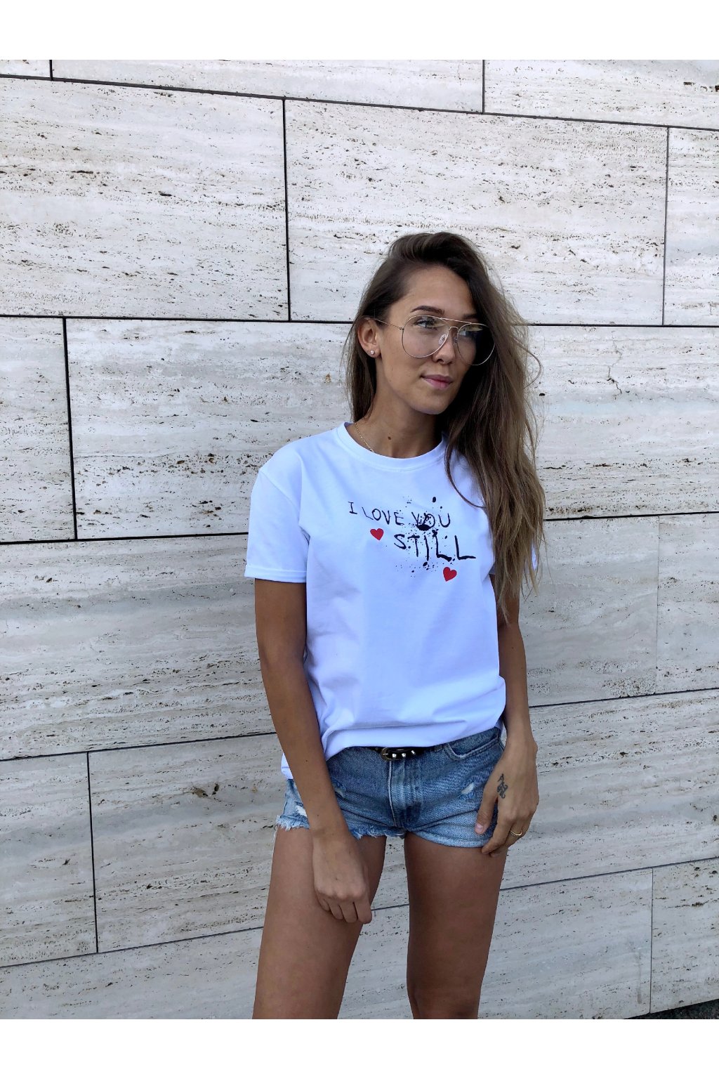 Dámské stylové tričko s potiskem I Love You Still v barvě White.