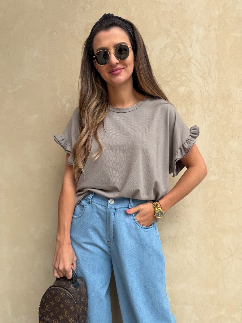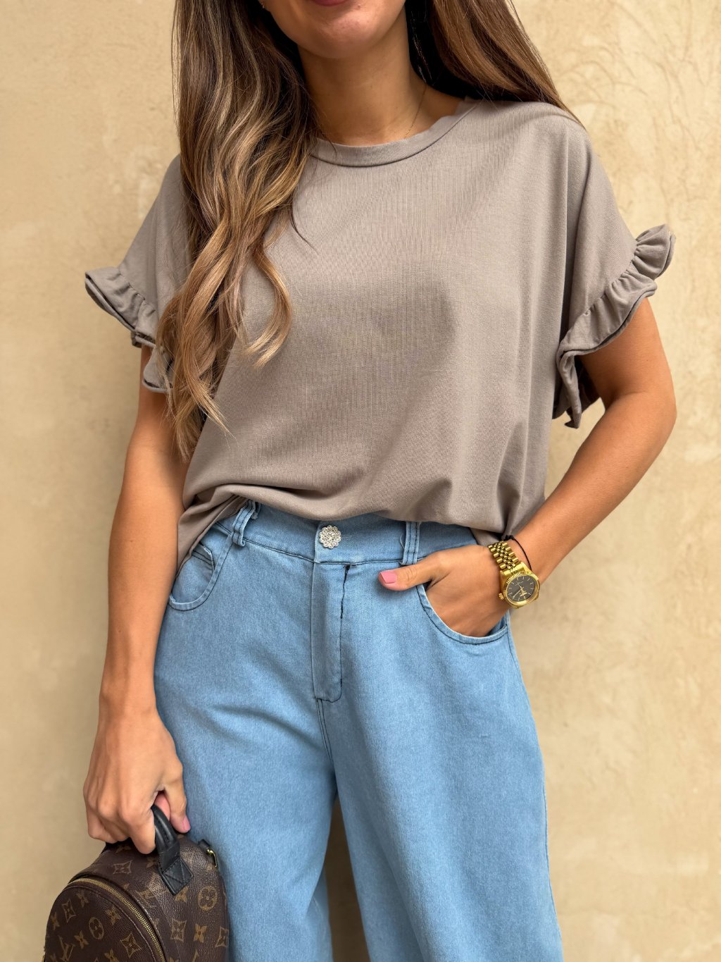 Dámské tričko s volánkovým rukávem Mocca