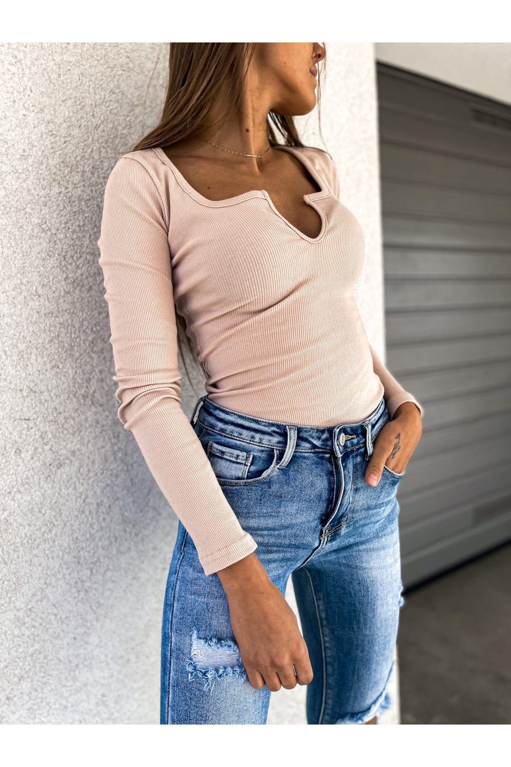 Stylové, žebrované tričko s dlouhým rukávem a sexy výstřihem. Tričko je krásně přiléhavé k postavě. Sladit můžete s riflemi, kraťásky z naší nabídky a přidat k nim můžete například cardigan s kapucí Long.