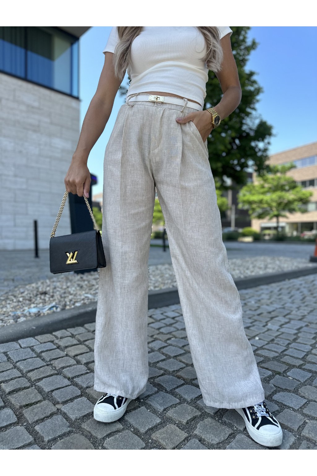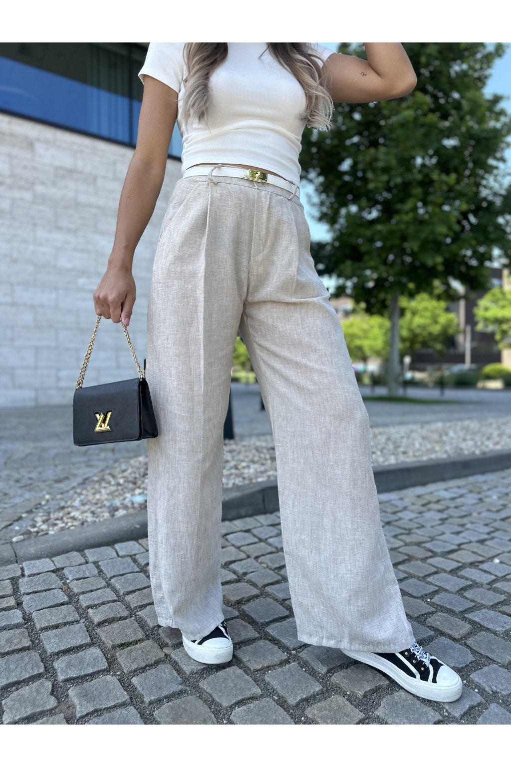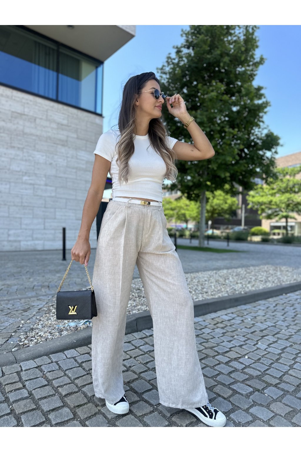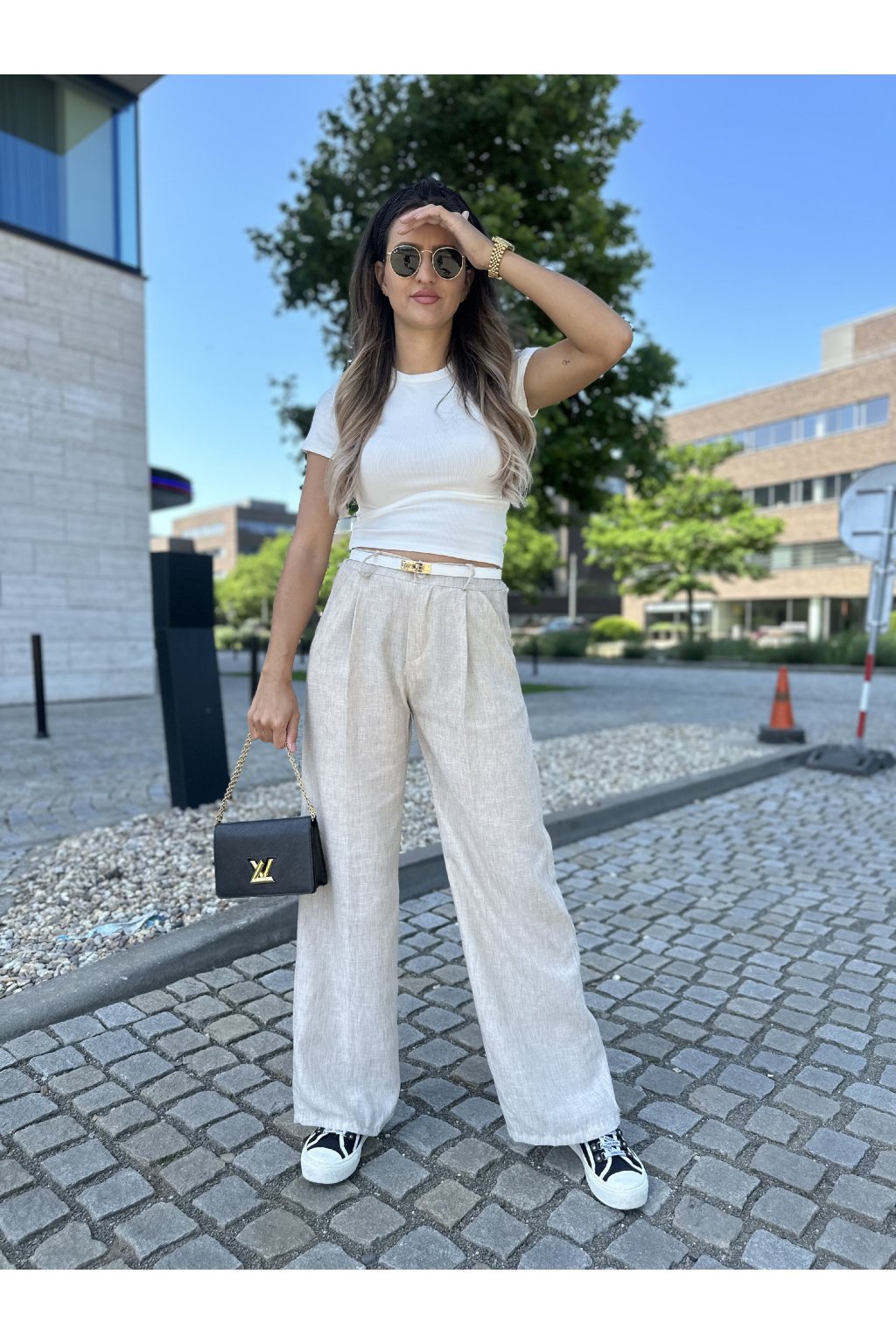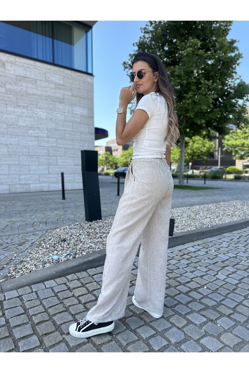 Stylové široké kalhoty s gumou v pase a s kapsami. Příjemný, lehký, vzdušný materiál. Nakombinovat je můžete na jaře a na podzim se svetrem, v létě s cropped topem nebo tílkem. Velmi příjemný kousek. Pásek najdete v naší nabídce!