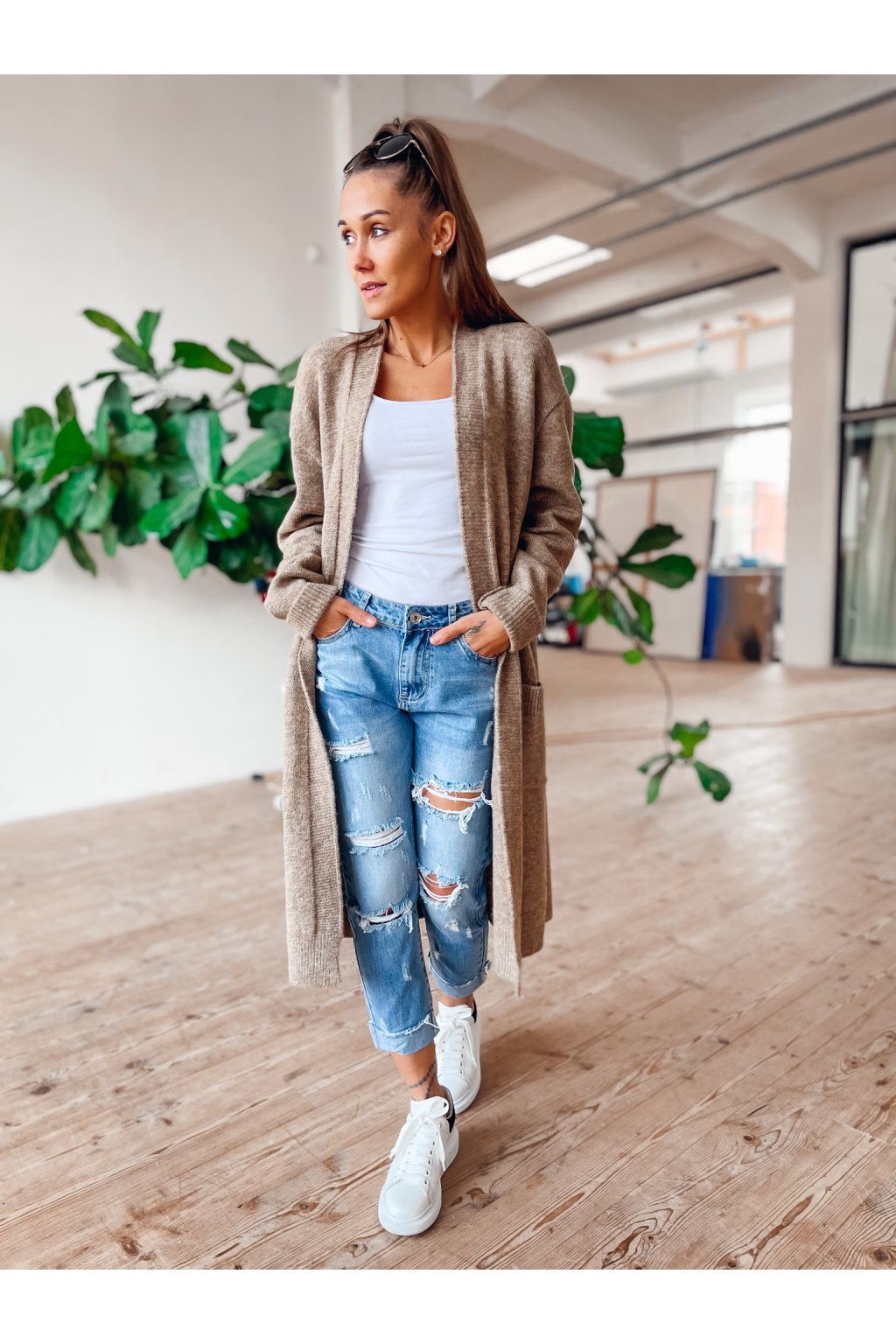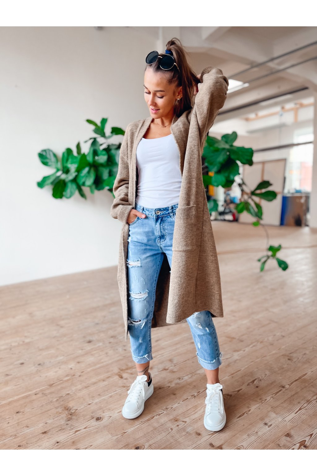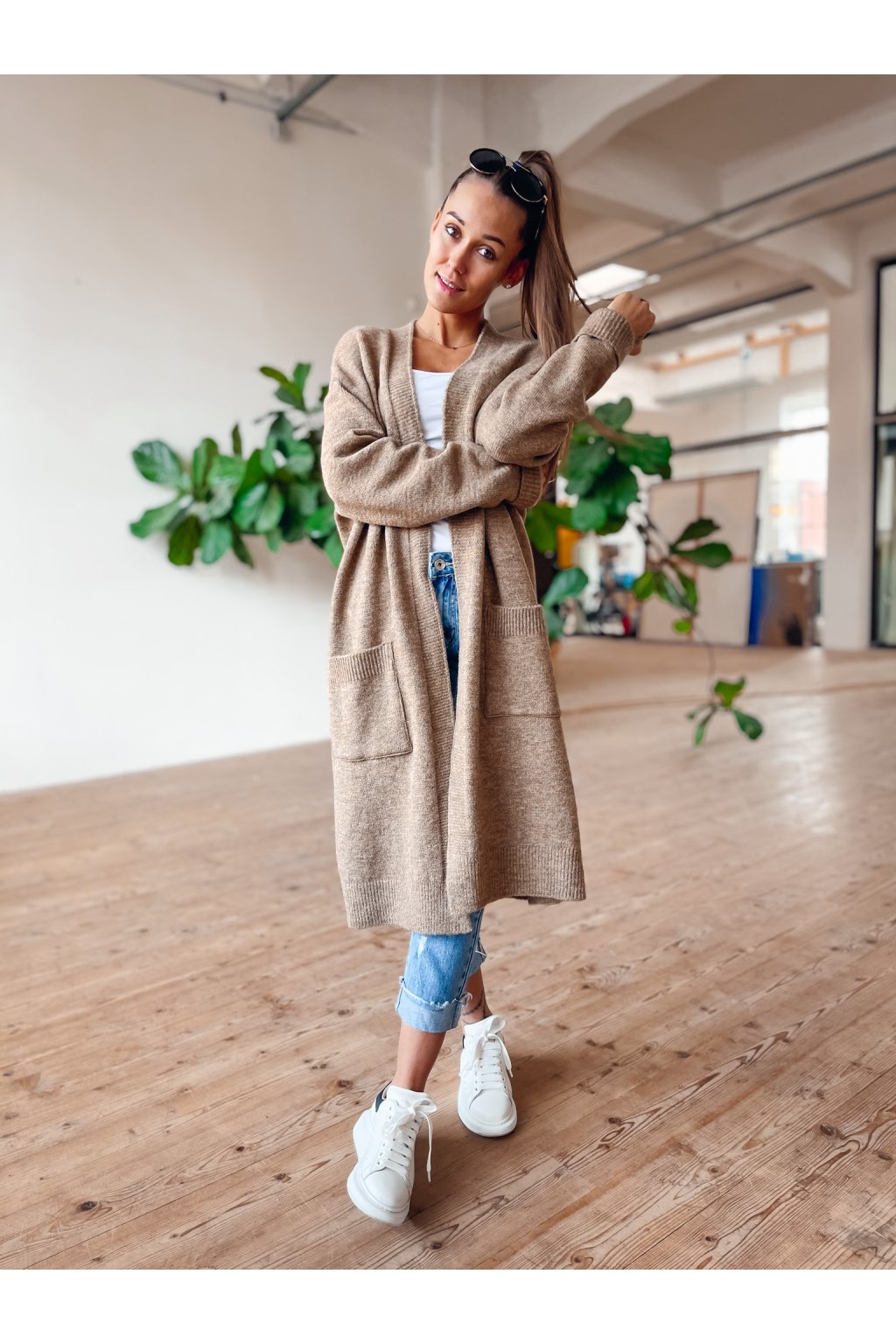 Luxusní dámský dlouhý cardigan v melírované mocca barvě. Cardigan má dvě přední kapsy. Dokonalý kousek, který si rychle zamilujete. Produkt byl vybrán pečlivě, s láskou a důrazem na vysokou kvalitu materiálu.