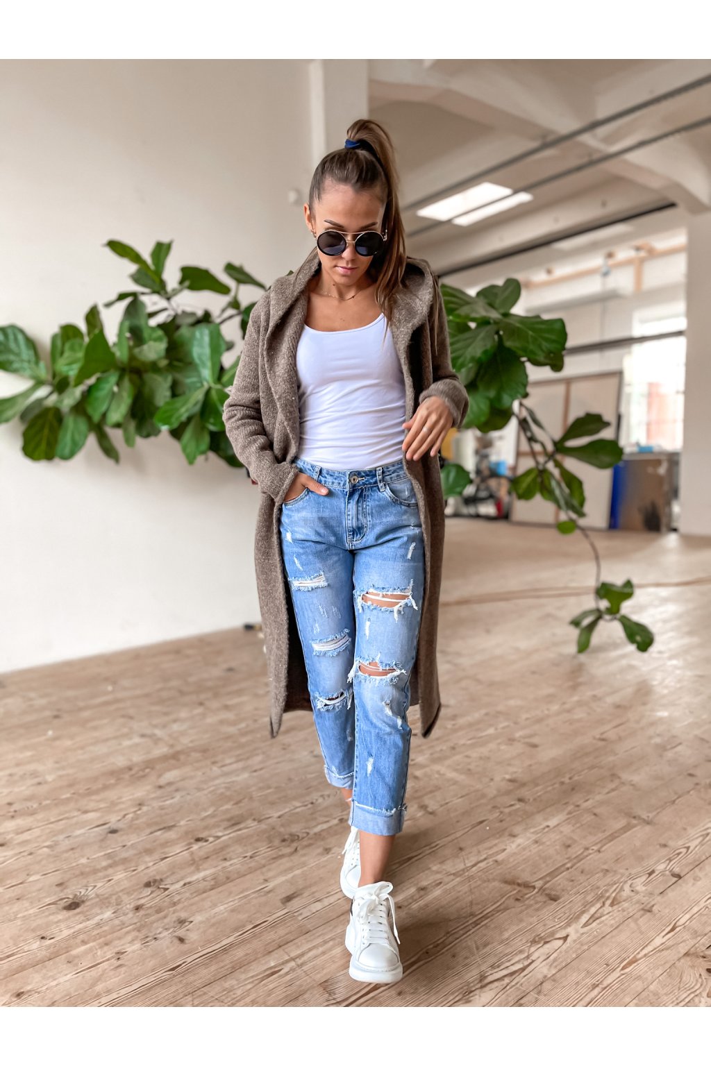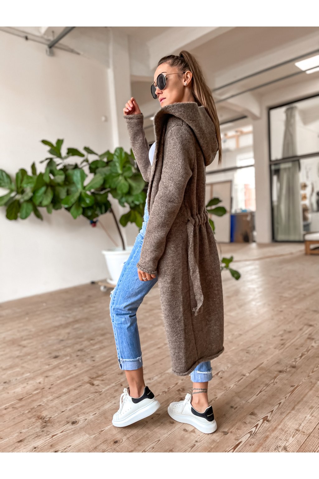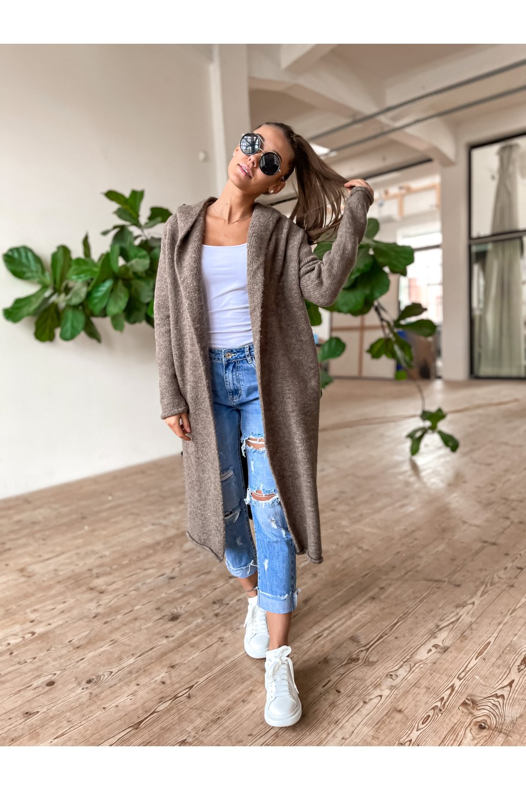 Dámský cardigan s kapucí Long Chocolate