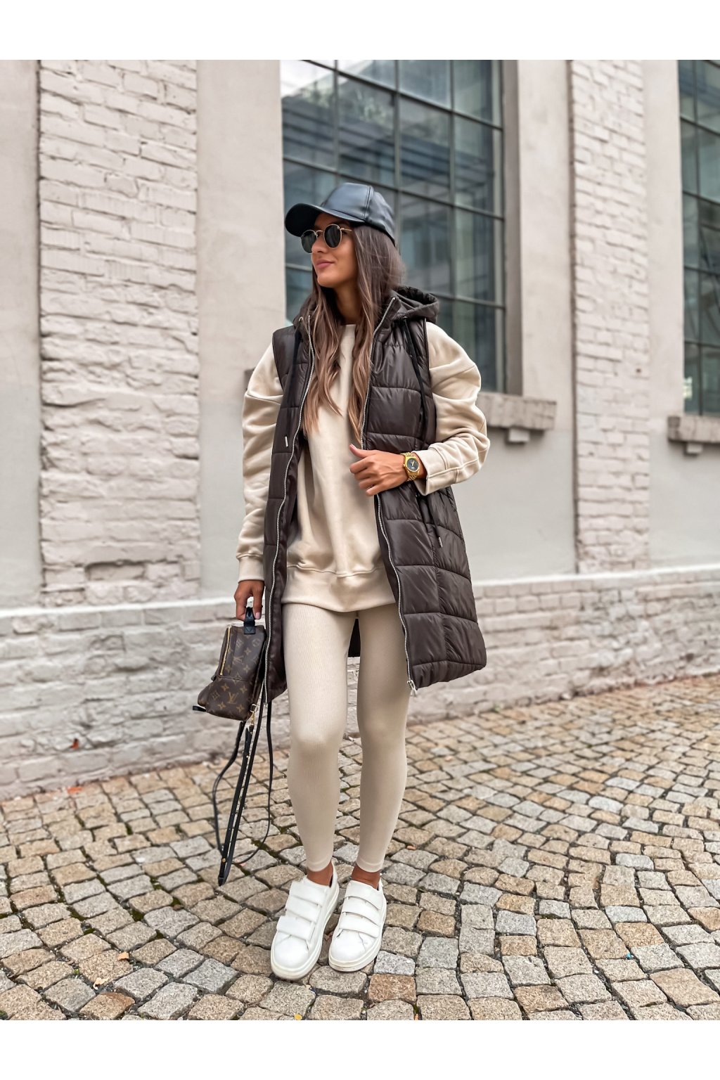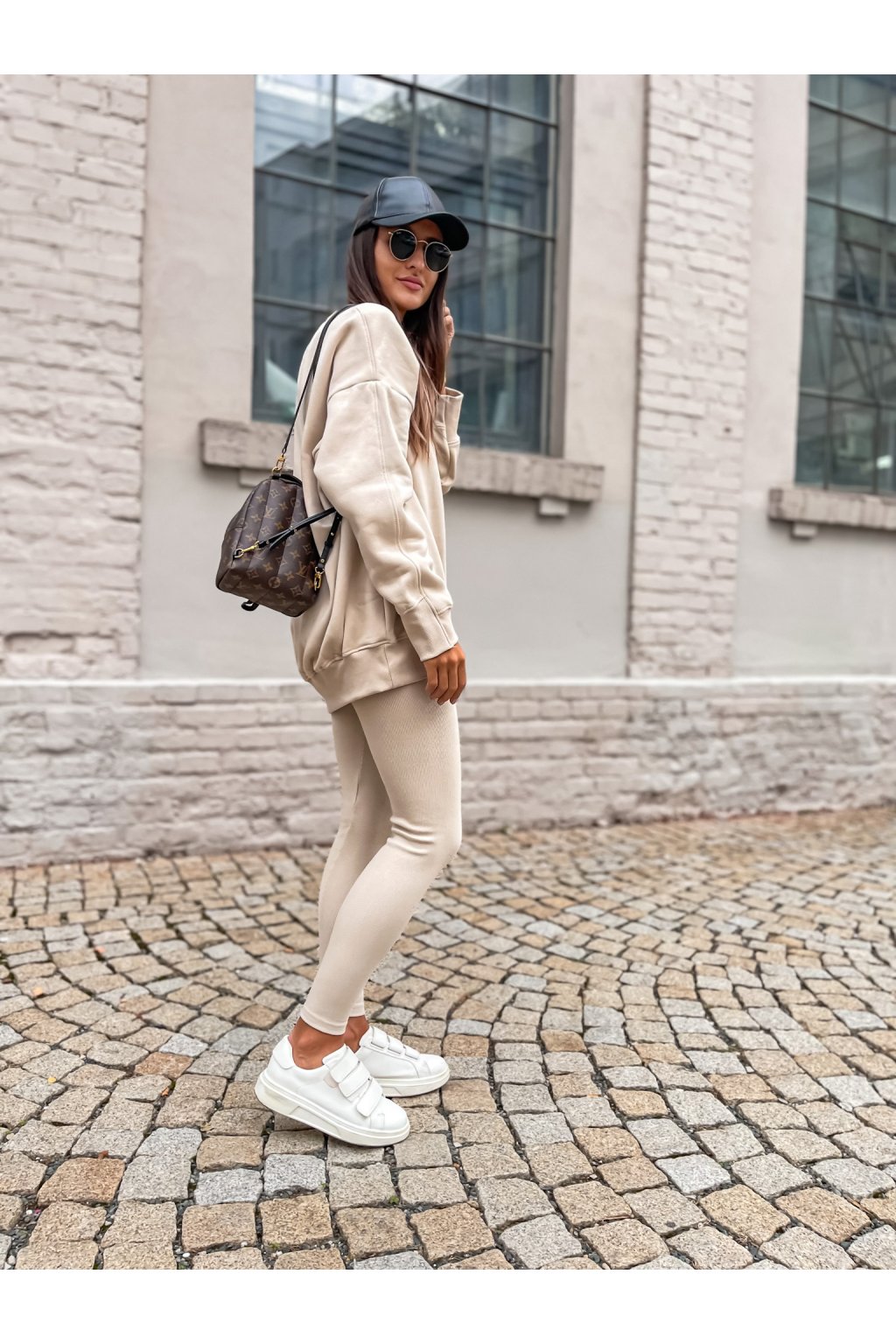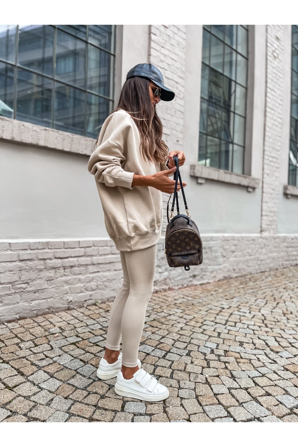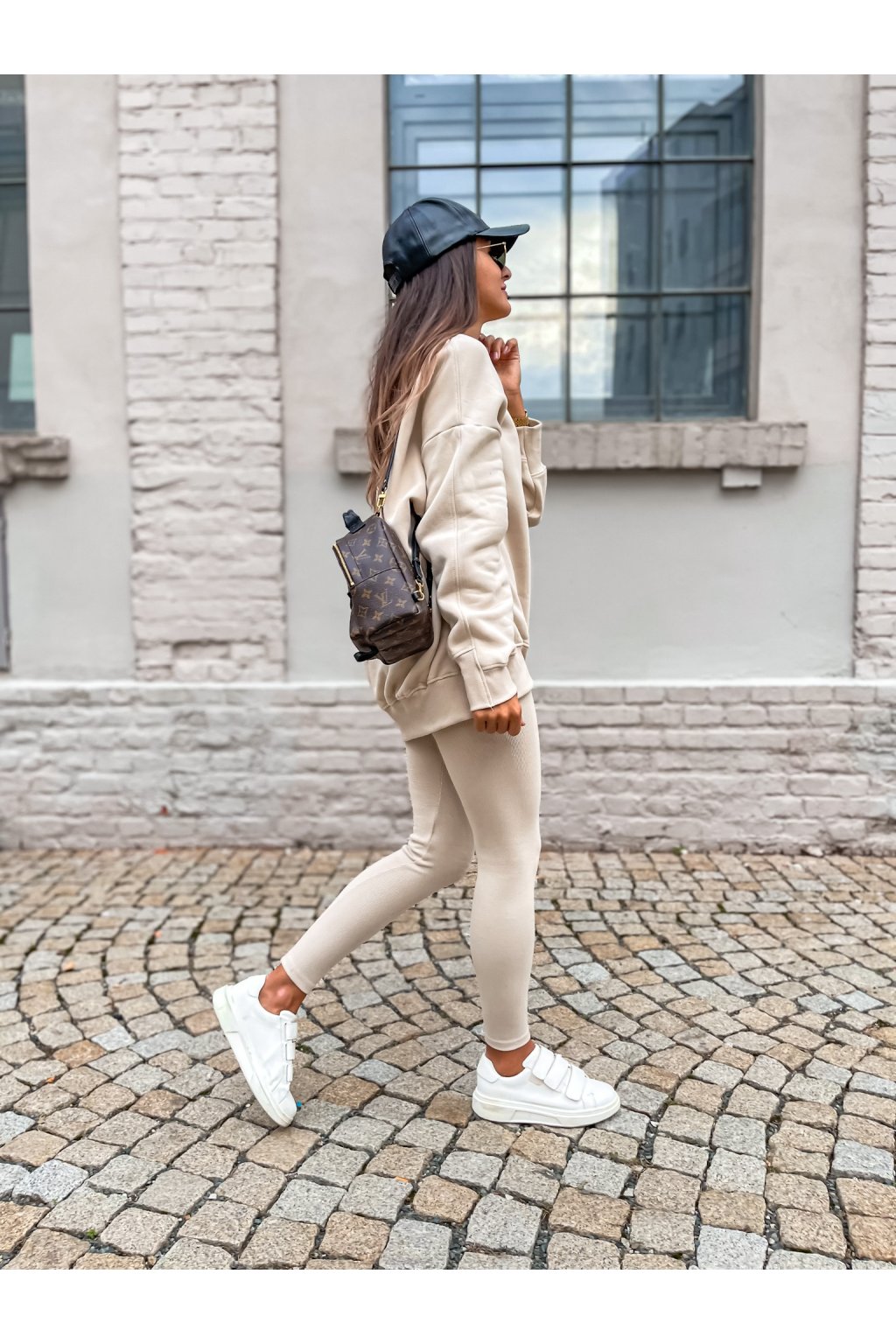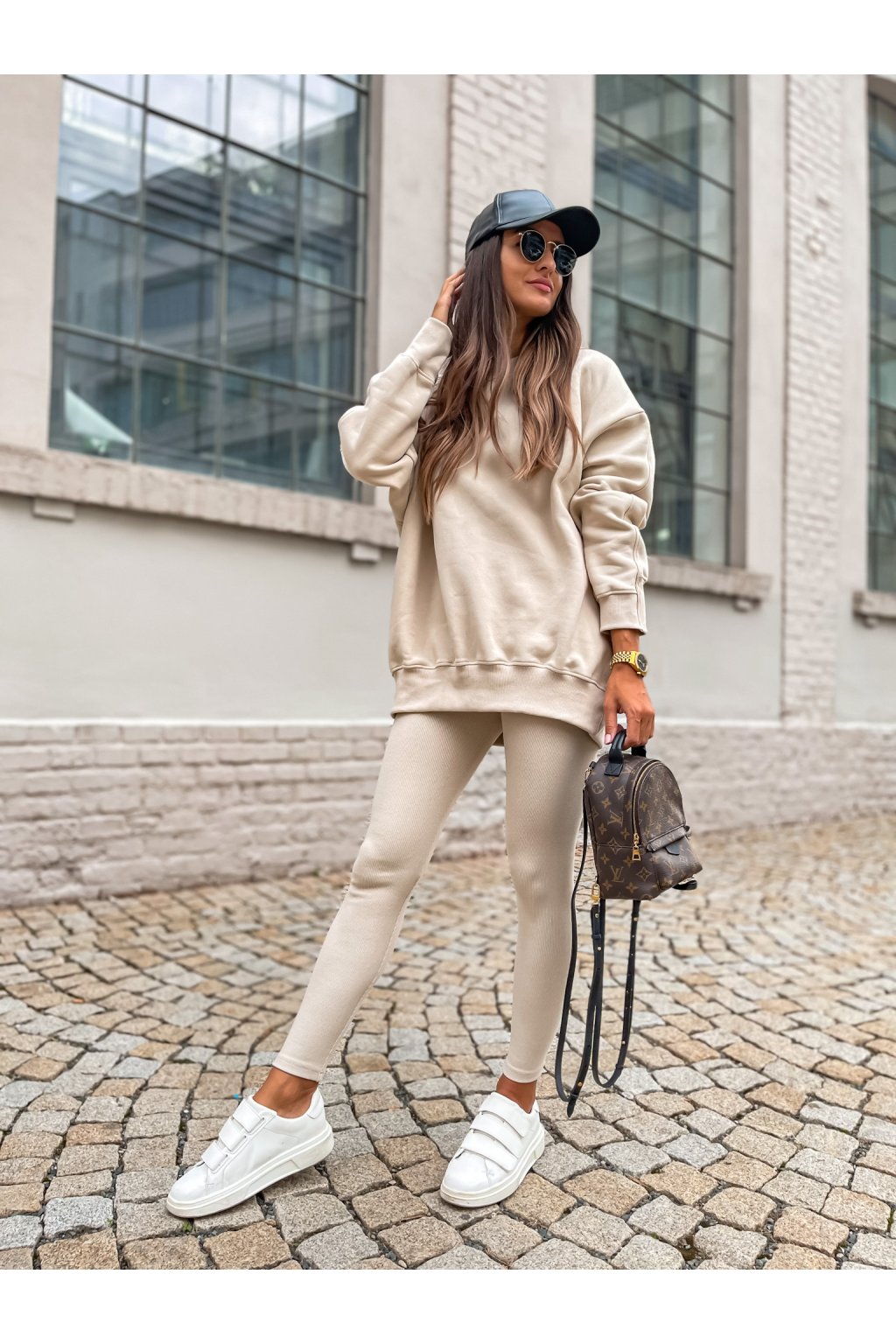 Stylový komplet složený z oversize mikiny z počesané teplákoviny a žebrovaných legínů. Za nás opravdu velmi pohodlný a povedený kousek. Nakombinovat můžete s vestou. Využití kompletu je celoroční a je možné nosit jednotlivé kousky i samostatně.