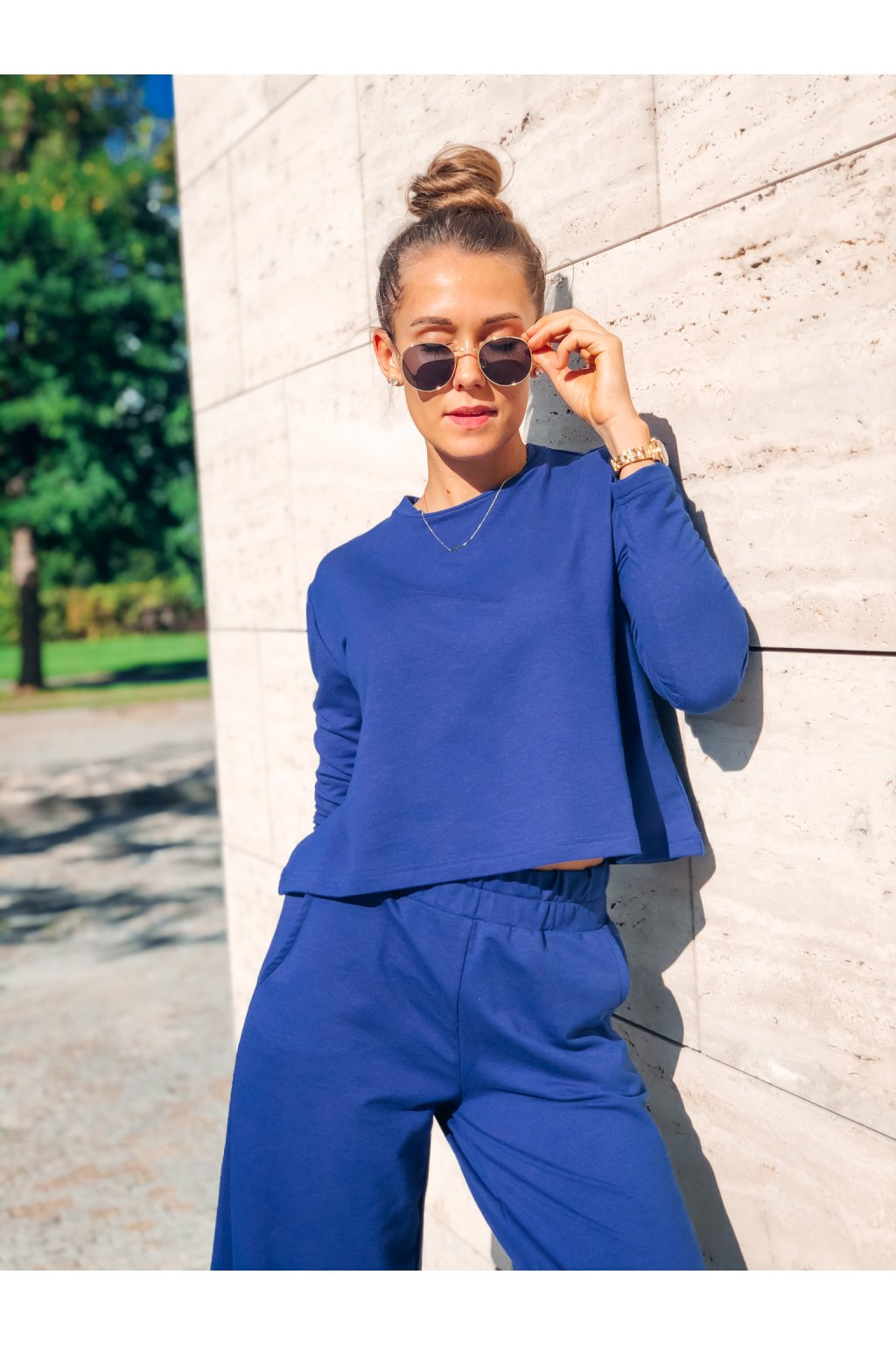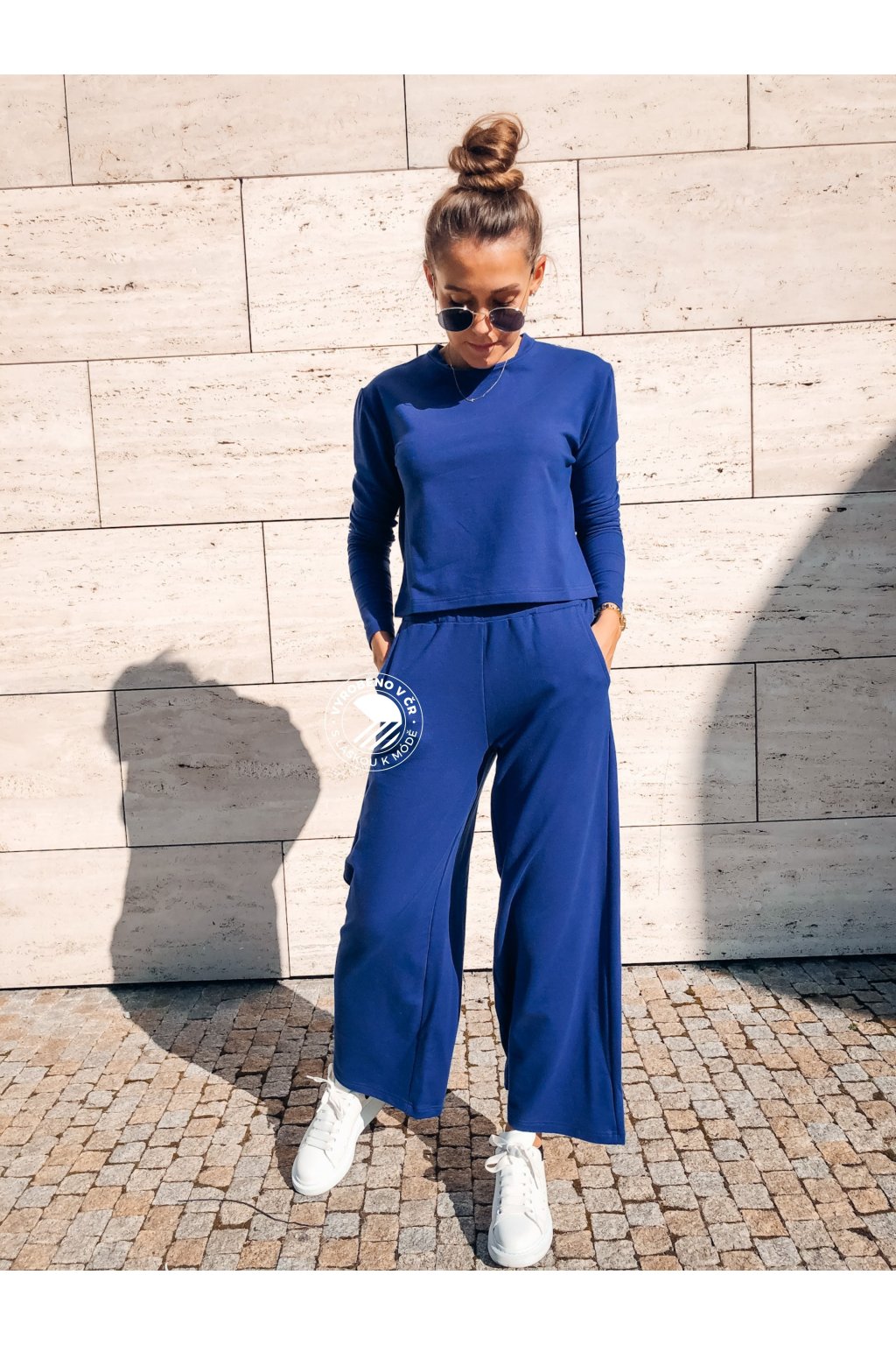 Stylový dámský komplet Rossie. Komplet se skládá z topu a širokých kalhot s kapsami a gumou v pase. Ideální kousek pro ženy, kterí mají rády pohodlí a zároveň se chtěji cítit stylově. Věci je možné nosit i samostatně a vytvořit si tak více outfitů.
