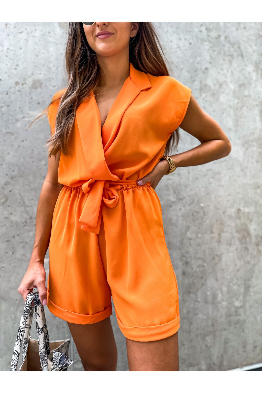 Luxusní dámský overal s výstřihem a vazáním v pase. Overal má gumu v pase. Zezadu je hladký bez kapes.