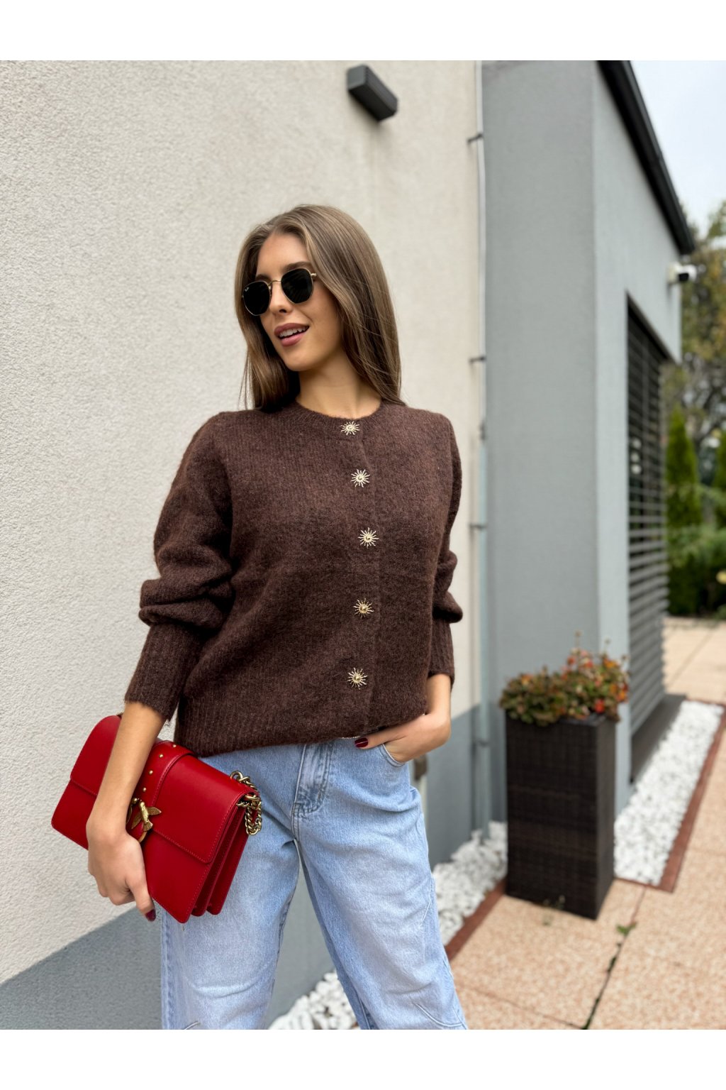 Dámský propínací svetřík s vlnou Wolvia chocolate
