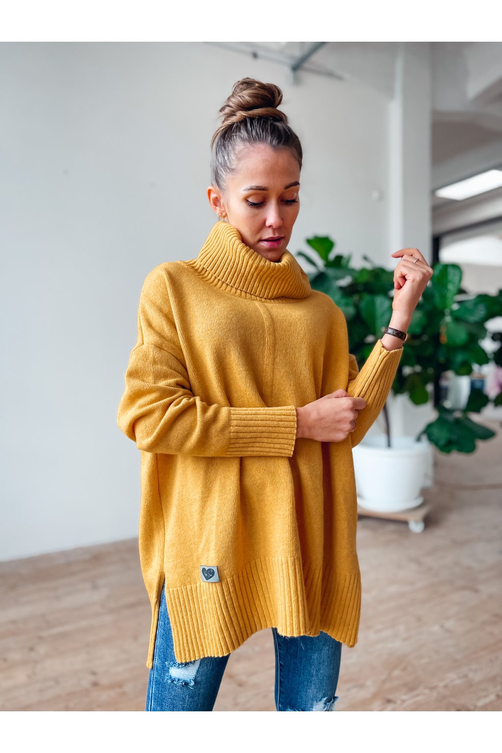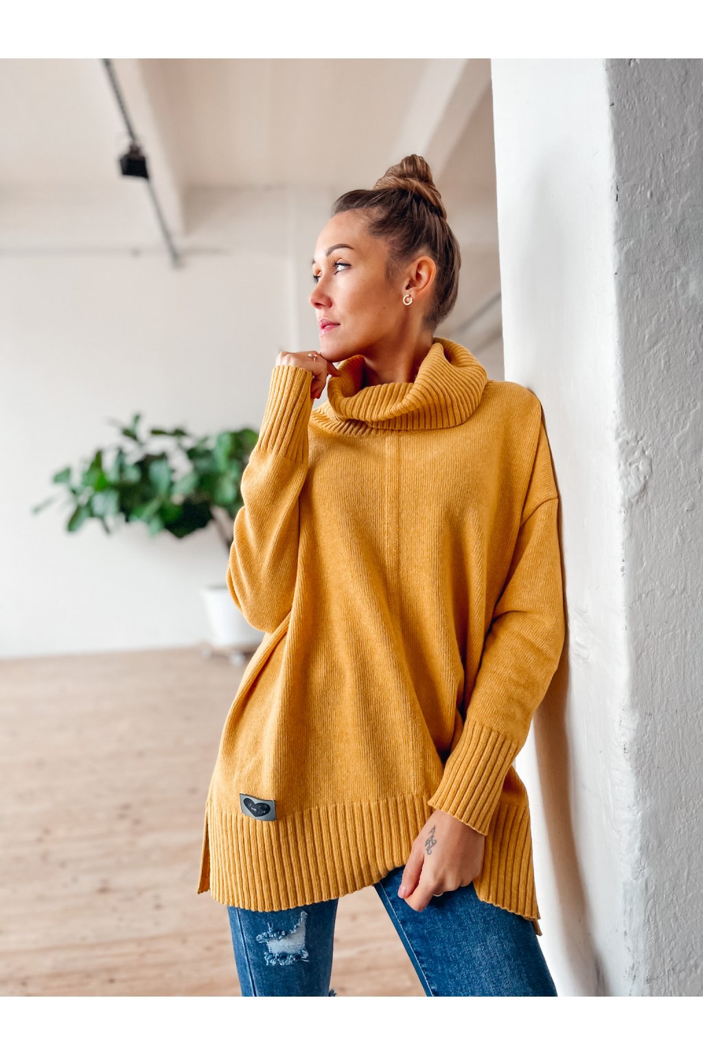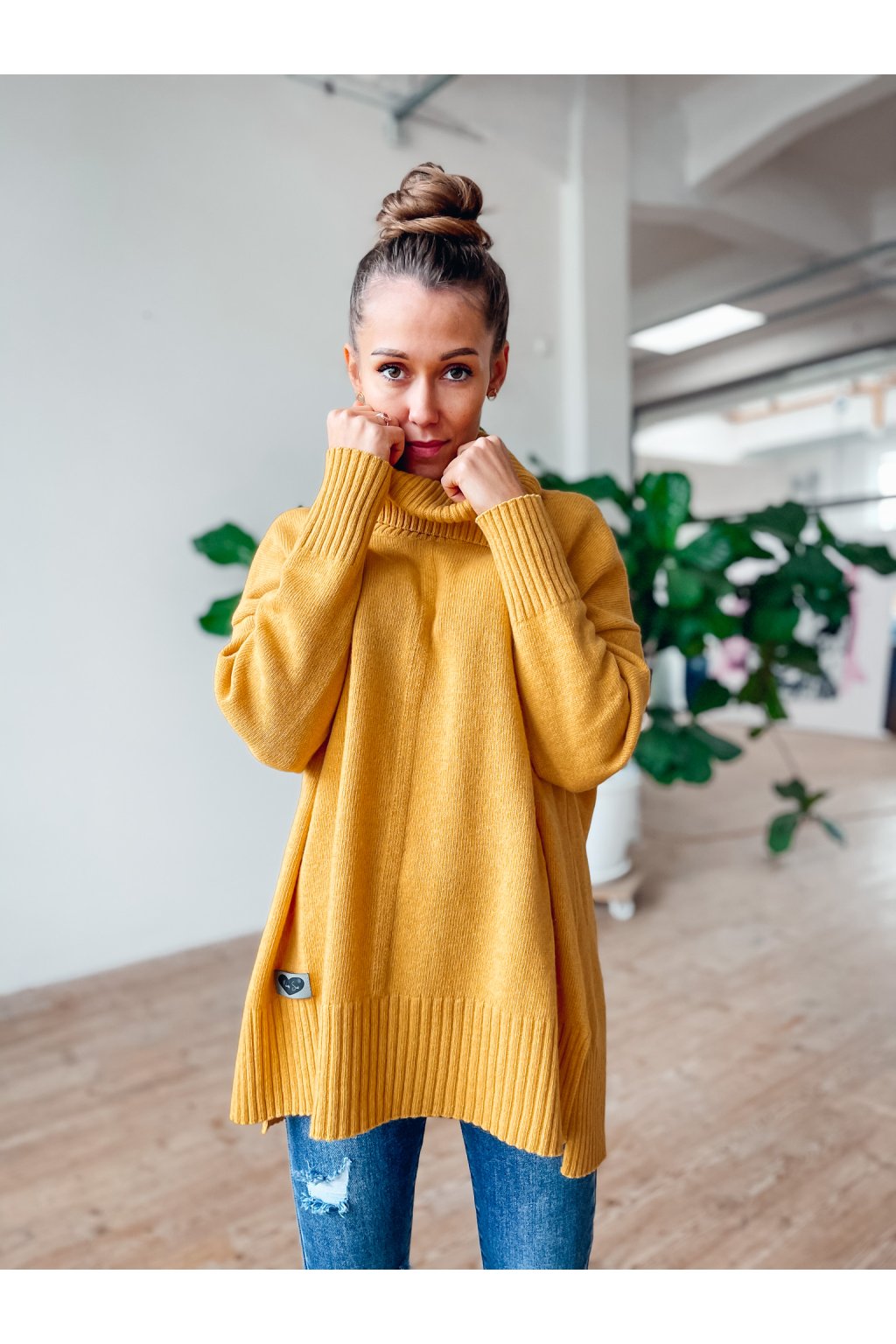 Luxusní rolákový svetr Premium s 80% podílem jehněčí vlny. Svetr je lehce prodloužený a po bocích má rozparky.