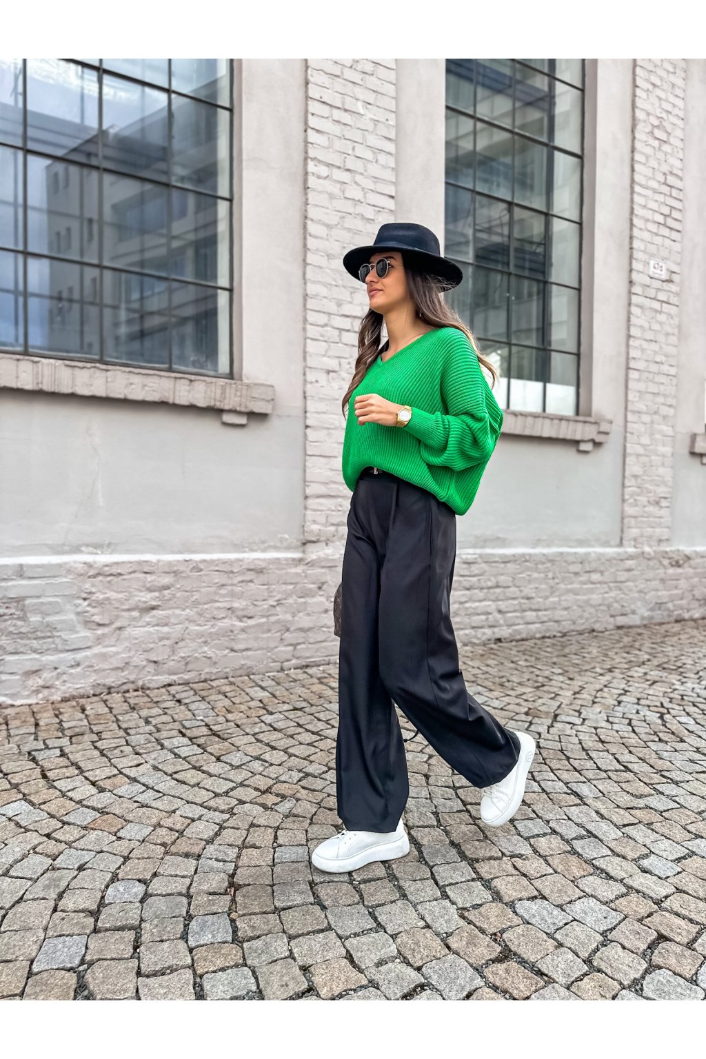 Dámský svetr s obsahem vlny a výstřihem do V. Svetr je měkký, teploučký a díky svojí délce je ideální jak s kombinací s věcmi s vyšším pasem - sukně, rifle, legíny, tak klasickými.