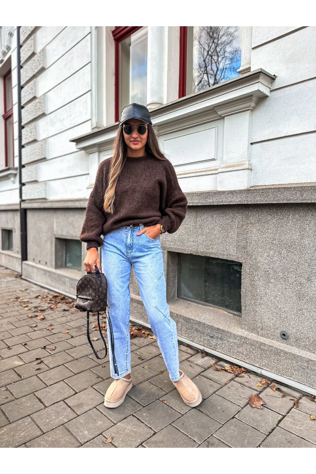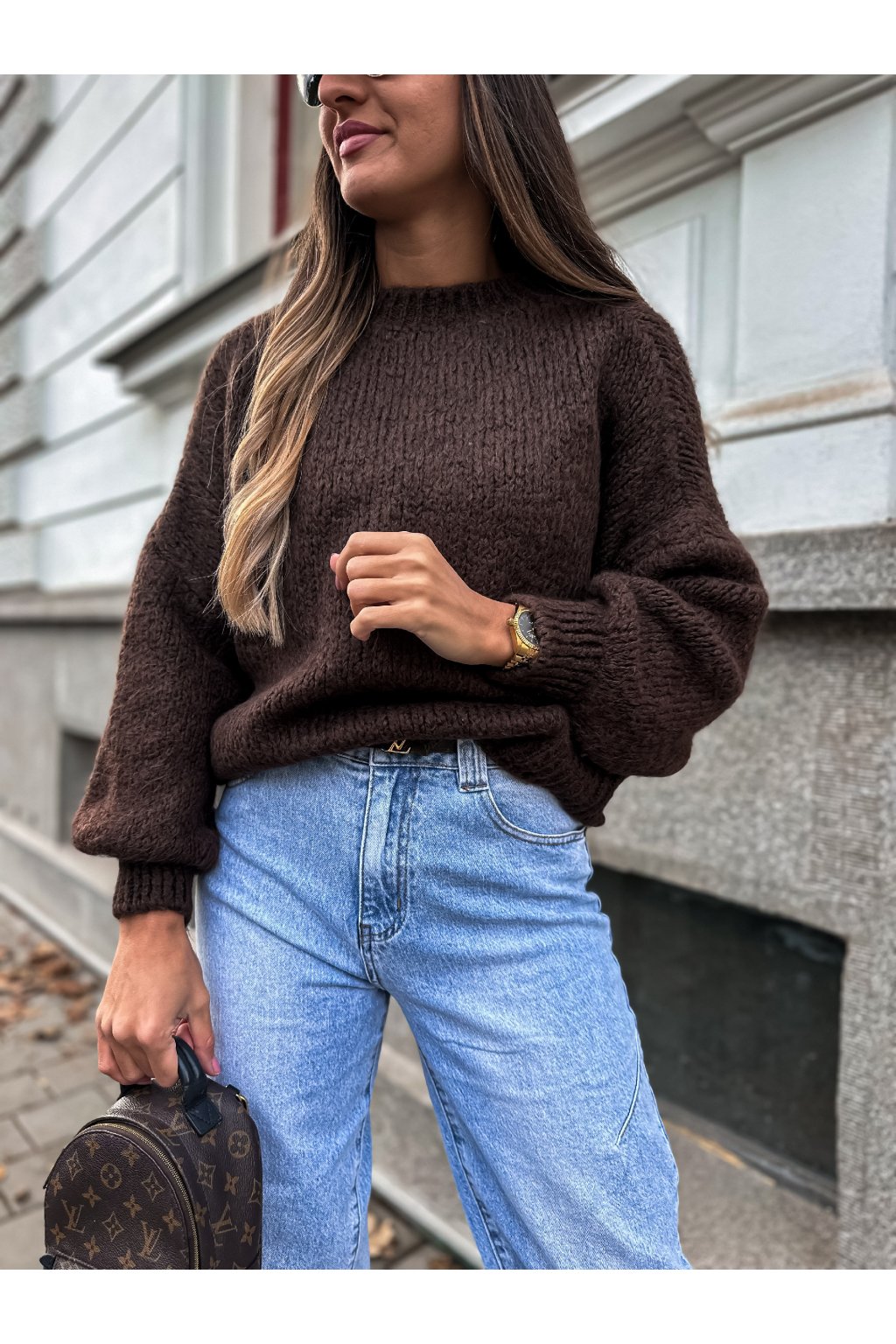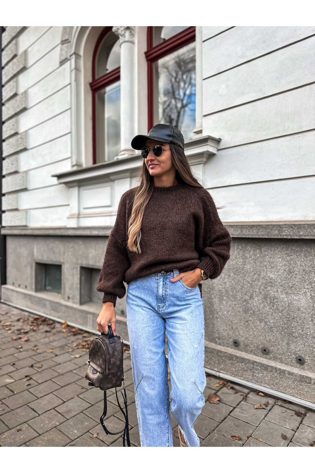 Dámský stylový svetr s podílem alpaky. Svetr má široké a nabírané rukávy. Je lehce oversized a dokonale se hodí na každodenní nošení. Žebrovaný lem na rukávech, u krku a ve spodní straně svetru.