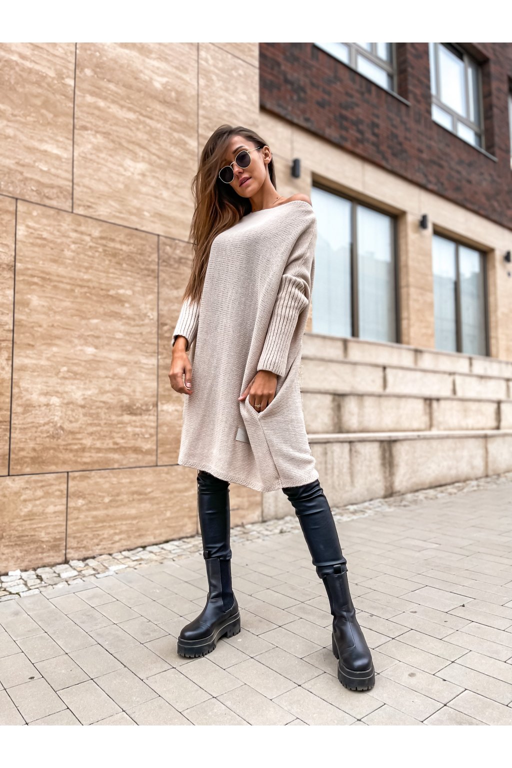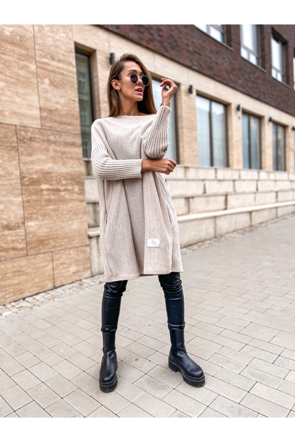 Stylový dámský svetr Long volnějšího střihu s kapsami. Velmi pěkný a originální střih svetru. Lze nosit i jako šaty a sepout v pase páskem. Produkt byl vybrán pečlivě, s láskou a důrazem na vysokou kvalitu materiálu.
