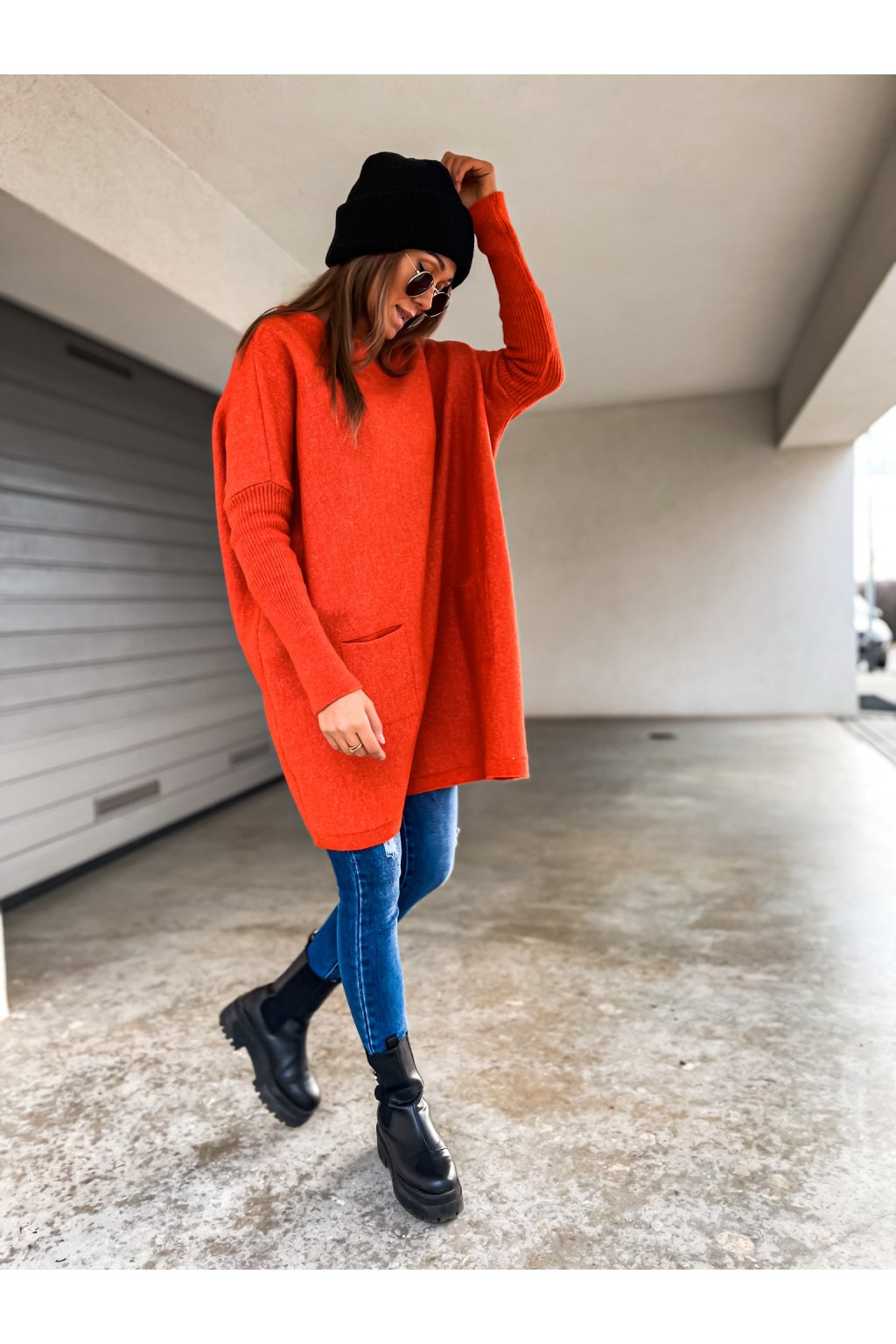 Stylový, hřejivý svetr s kapsami s upnutými rukávy. Svetr je vyroben z jemného, ale teplého úpletu, který si zamilujete. Střih je lehce do A a svetr je delší, tudíž se budete cítit pohodlně po celou dobu jeho nošení. Zakryje všechny nedokonalosti.