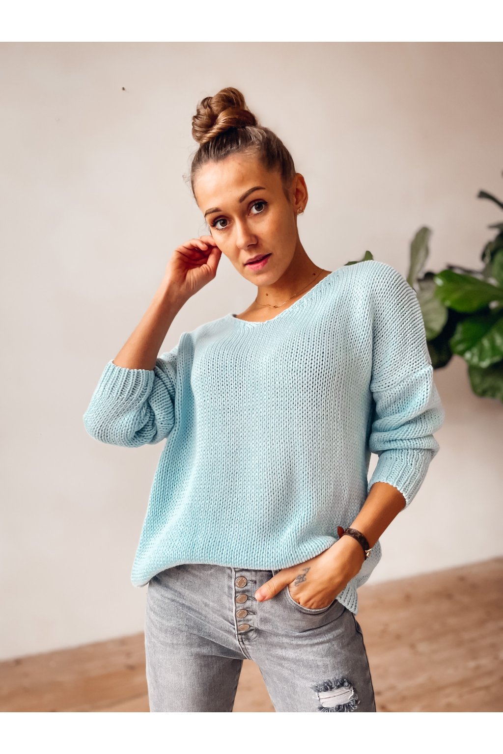Stylový svetr V Classic v barvě Baby Blue. Jeden z nejoblíbenějších modelů podzim/zima. Produkt byl vybrán pečlivě, s láskou a důrazem na vysokou kvalitu materiálu.