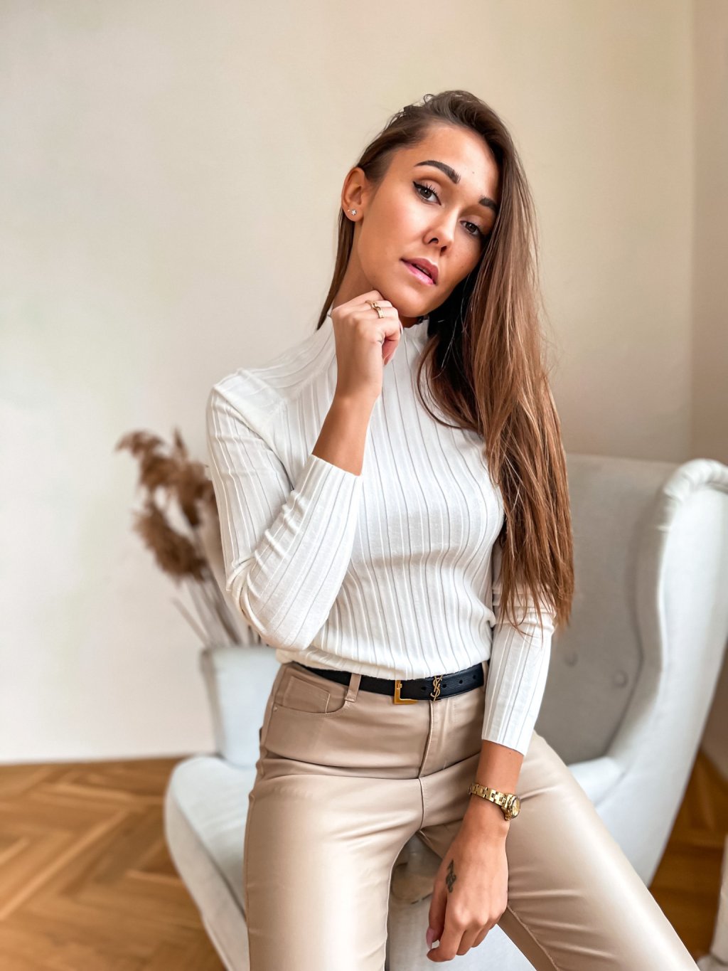 Luxusní dámský žebrovaný top se stojáčkem. Materiál je opravdu velmi příjemný na dotek a nošení. Velmi doporučujeme. Kousek, který Vám nesmí chybět v šatníku.