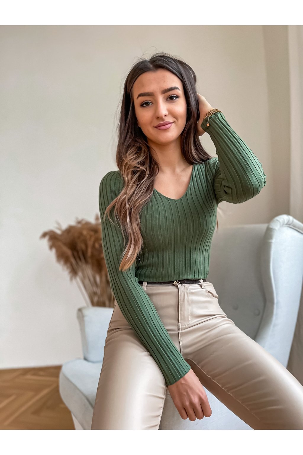 Luxusní dámský žebrovaný top V neck. Materiál je opravdu velmi příjemný na dotek a nošení. Velmi doporučujeme. Kousek, který Vám nesmí chybět v šatníku.