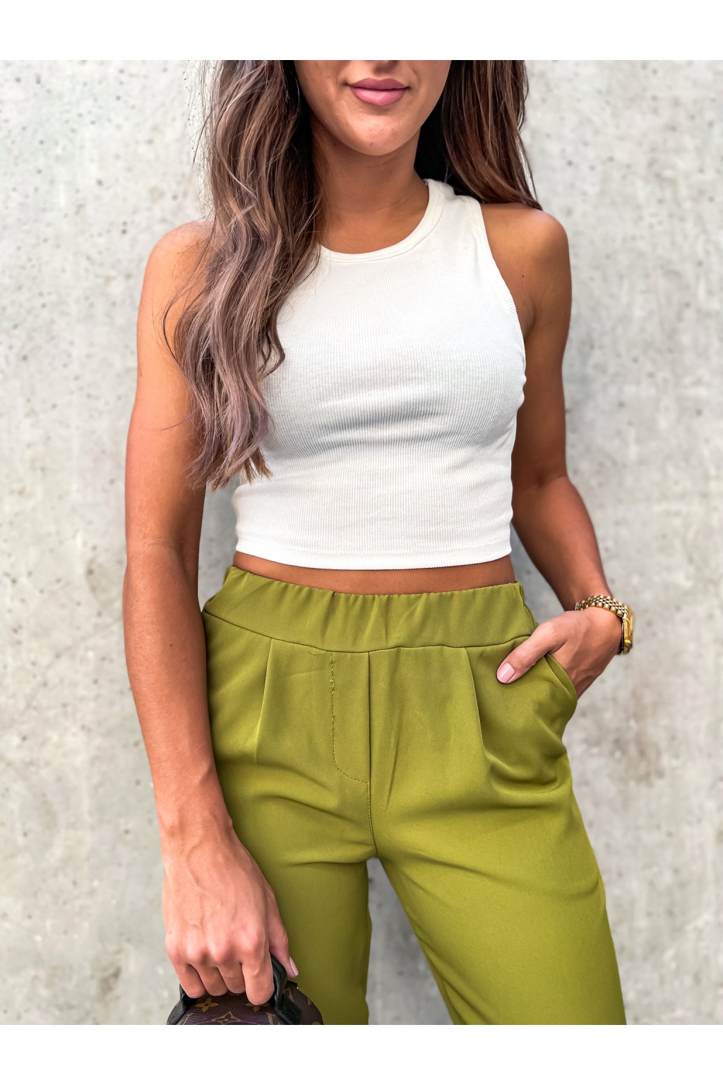 Stylový žebrovaný cropped top, který Vám nesmí chybět v šatníku. Nakombinujete ke kalhotům, kraťáskům, riflím nebo sukni. Snadno nakombinovatelný kousek.