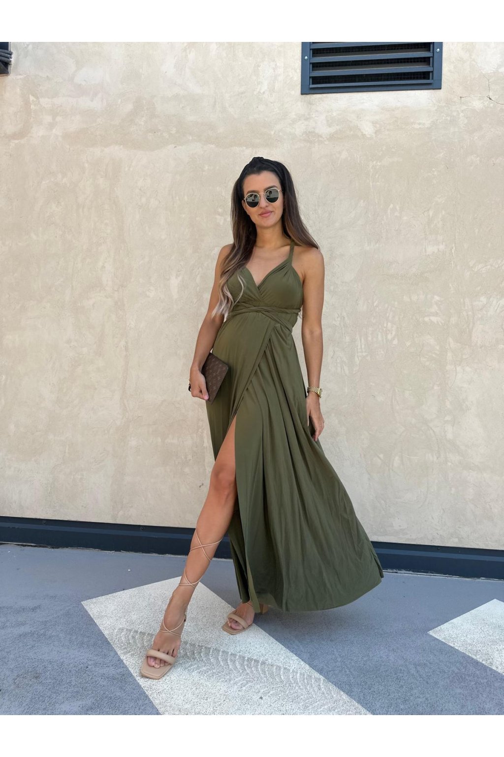 Dlouhé šaty s variabilním vázáním Kate Khaki