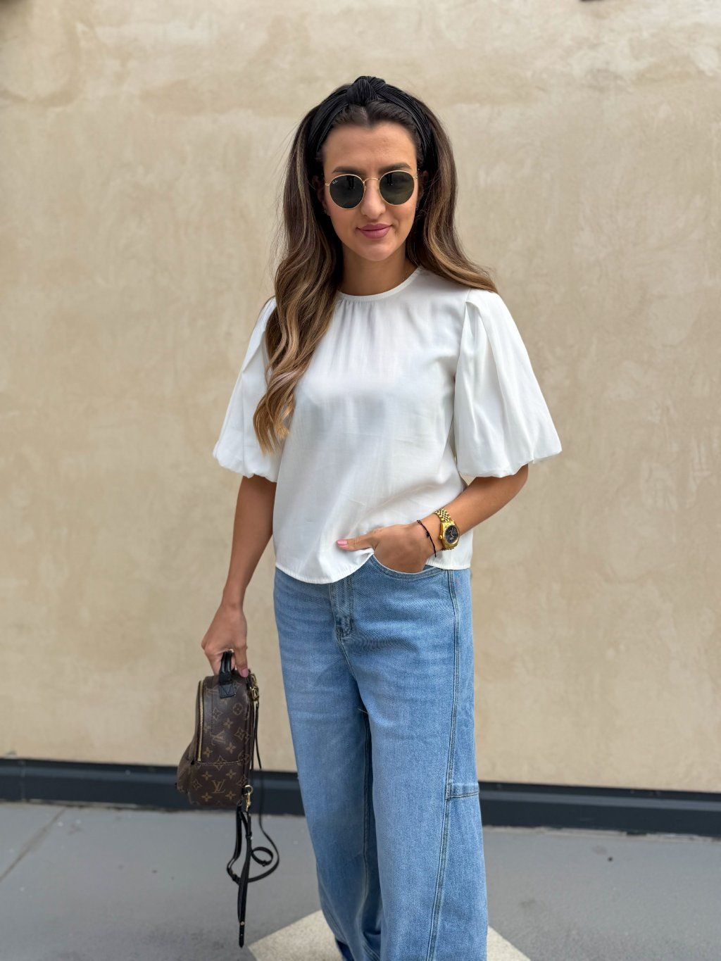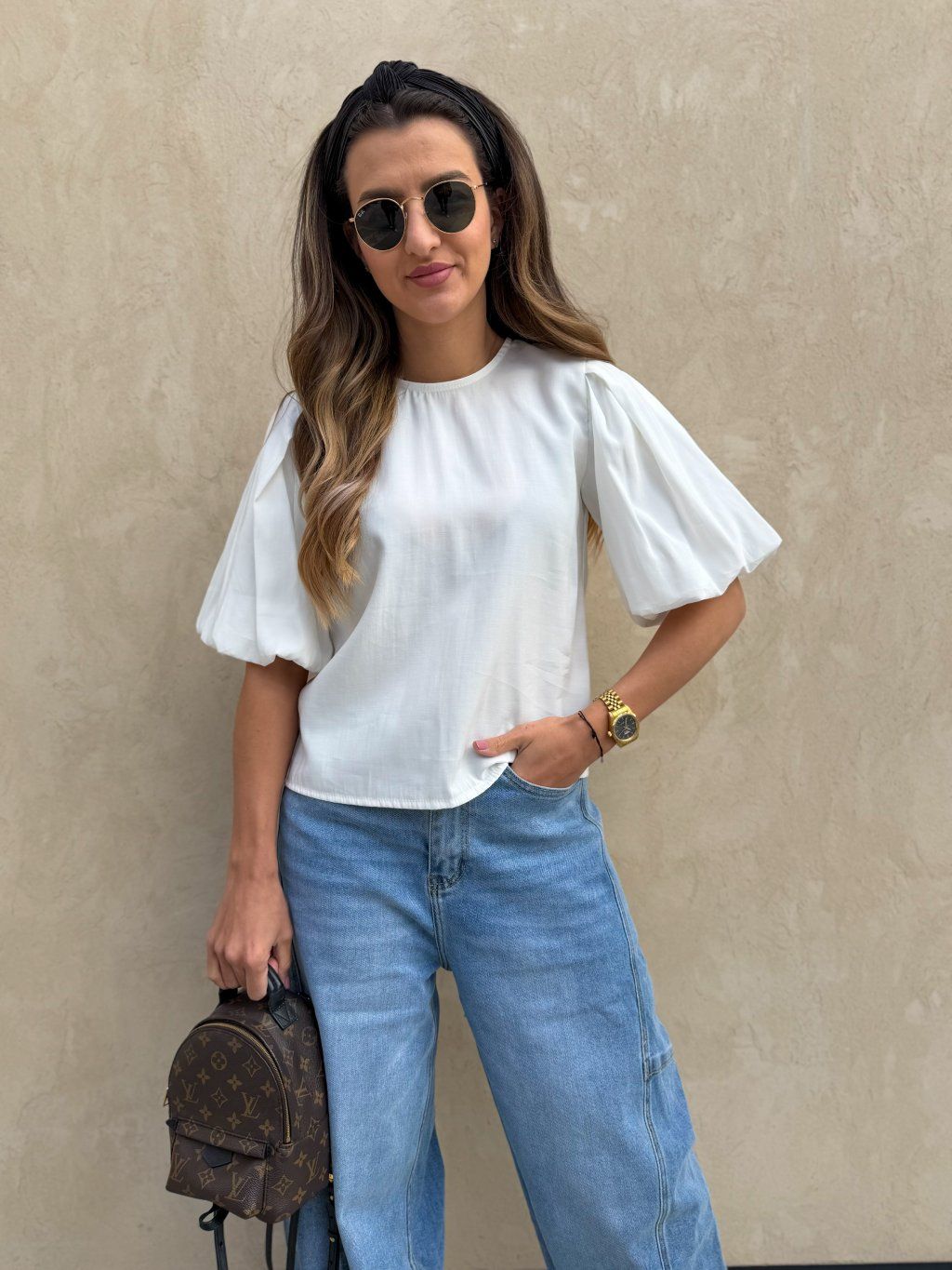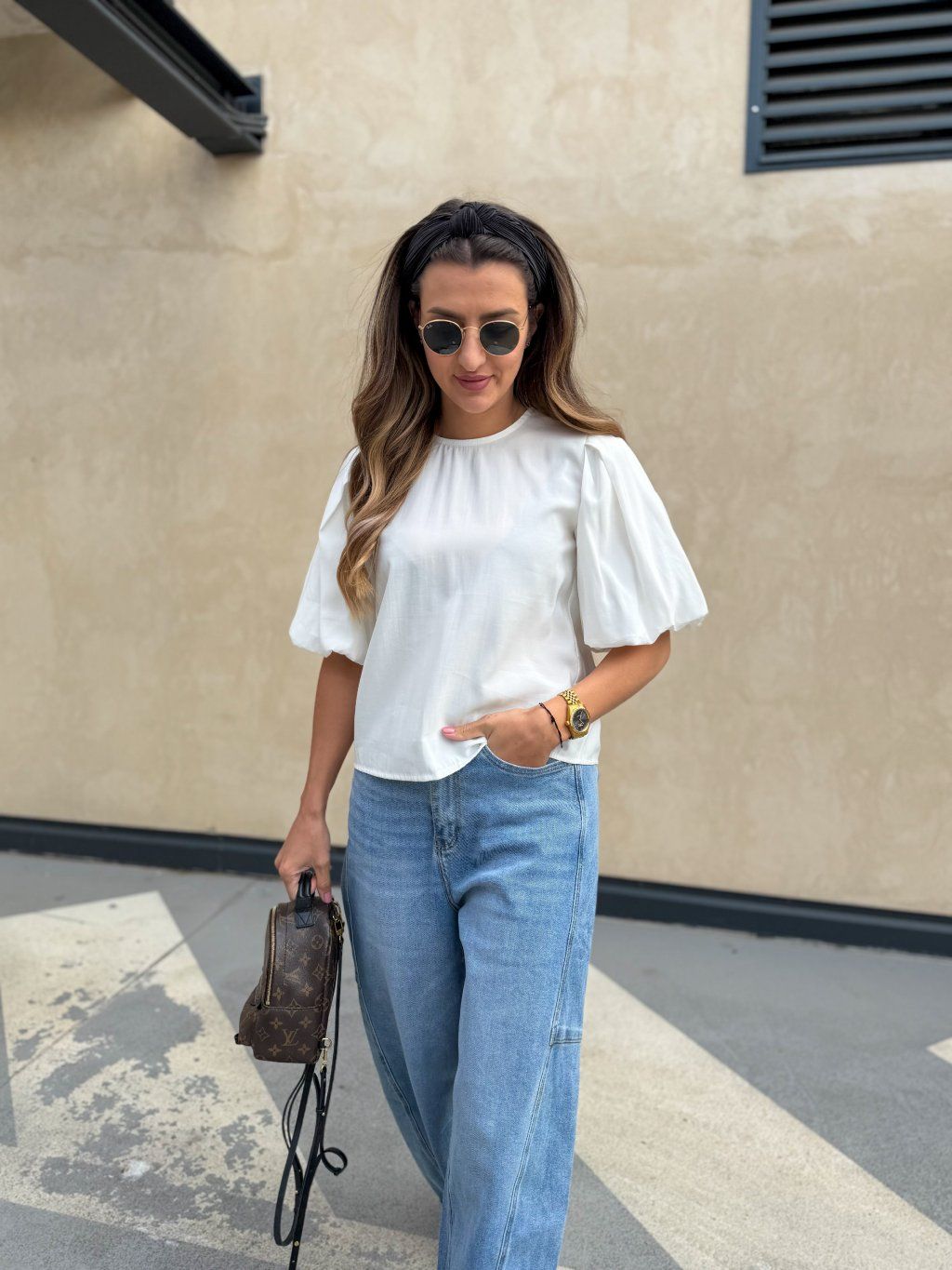 Stylová dámská halenka z příjemné bavlny. Stylové balónové rukávy a prostřih na zádech dodají vašemu outfitu ten správný šmrnc!