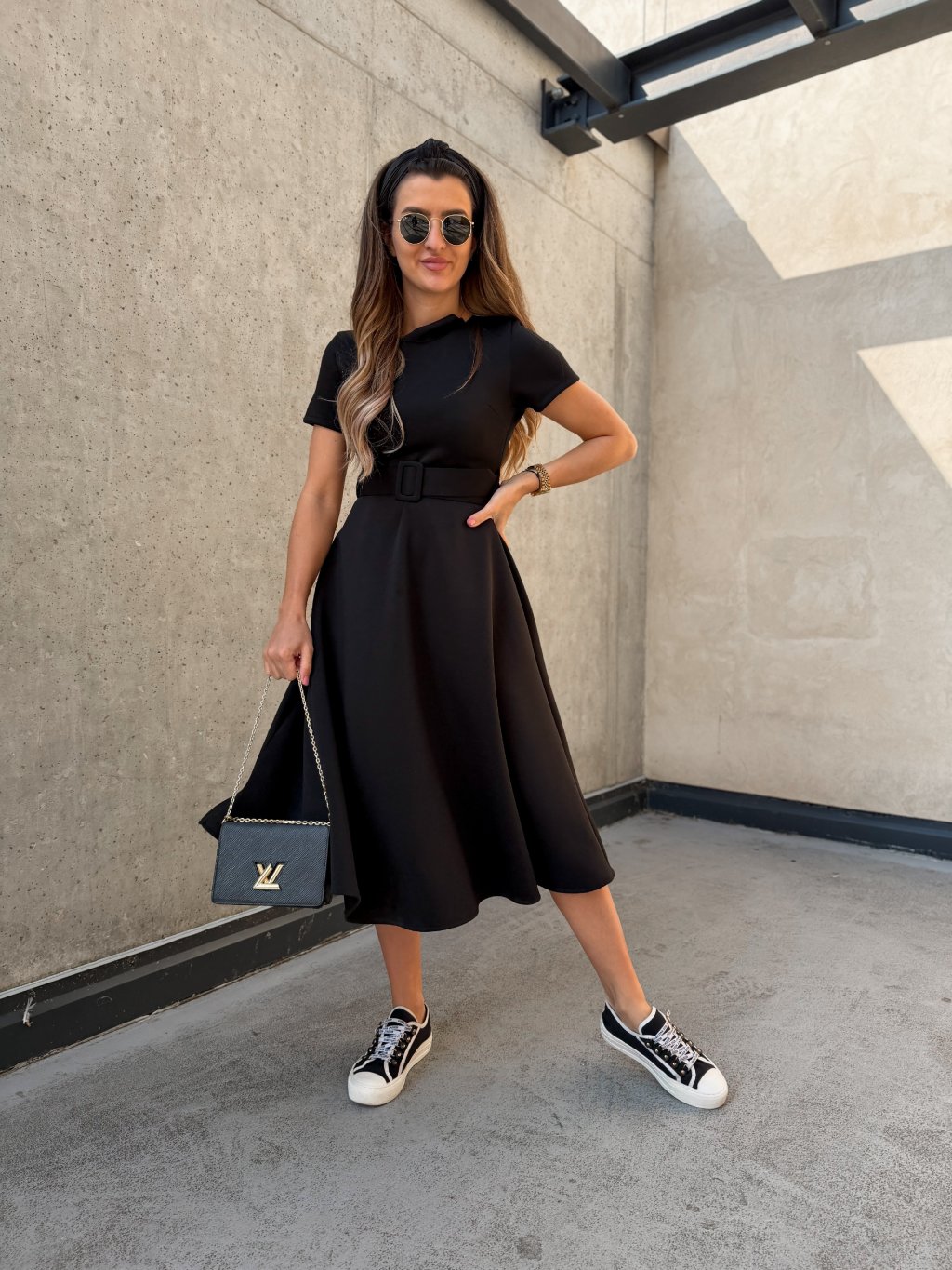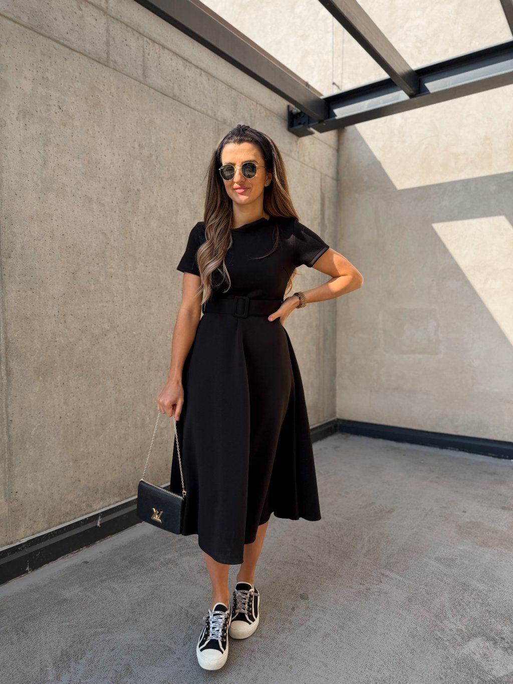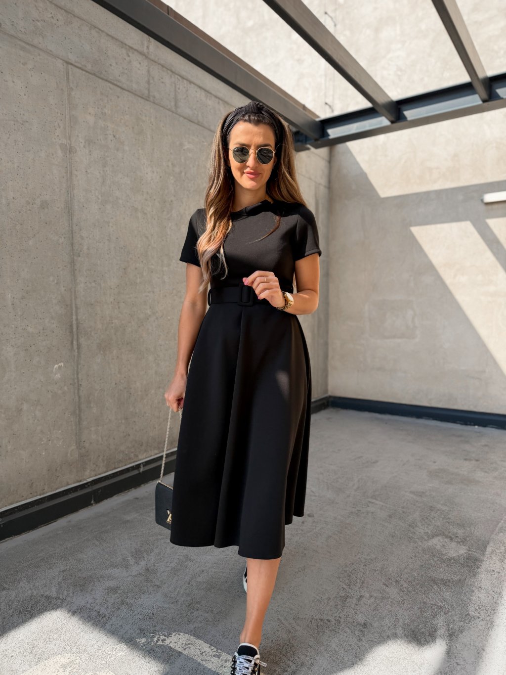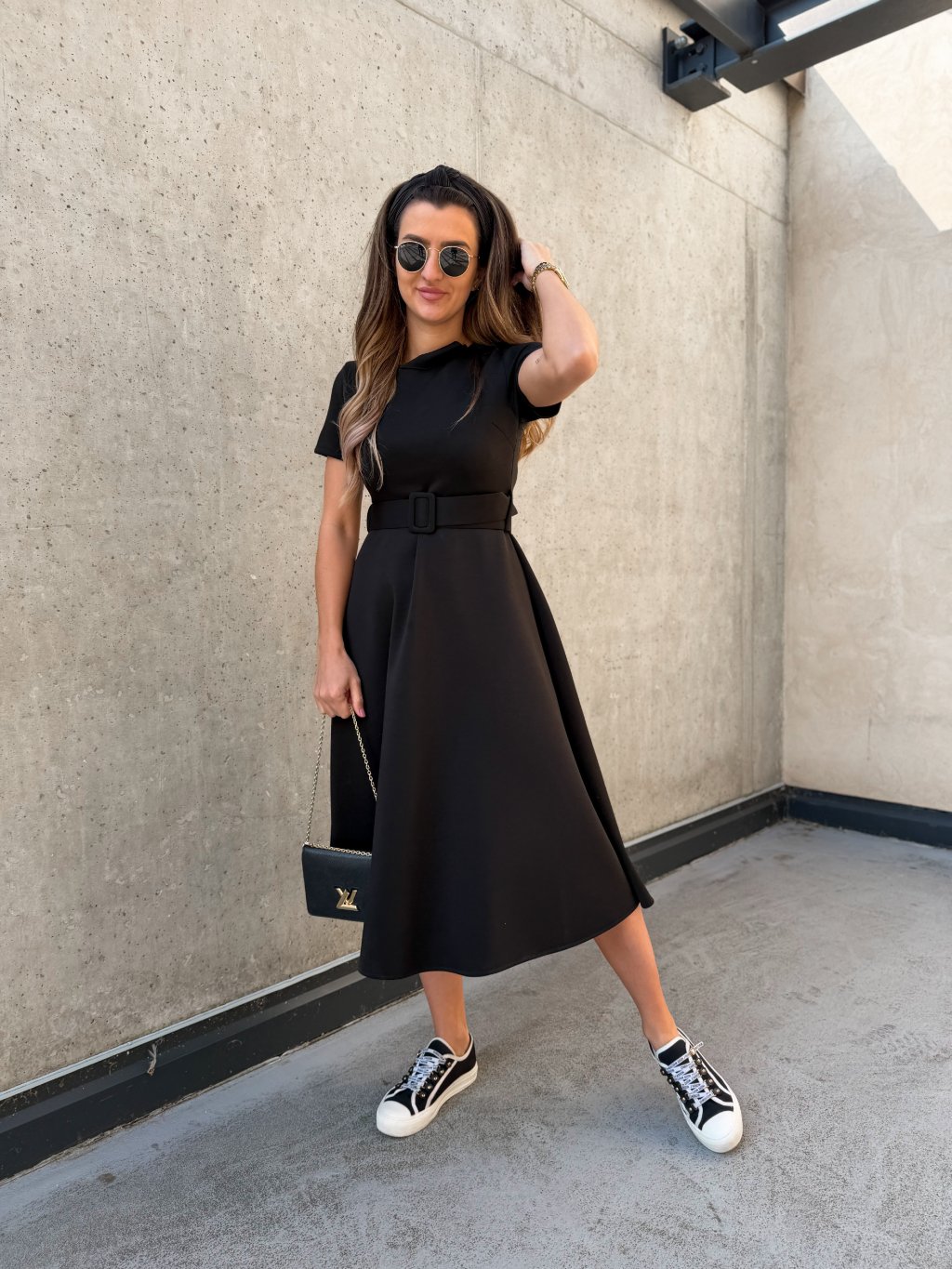 Hladké midi šaty s páskem Black