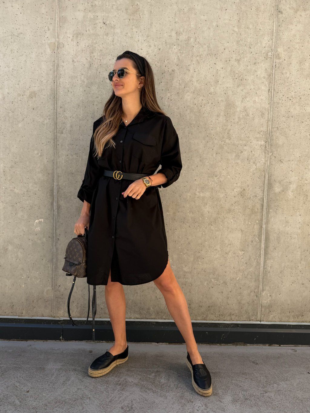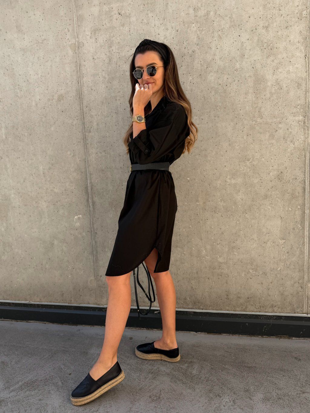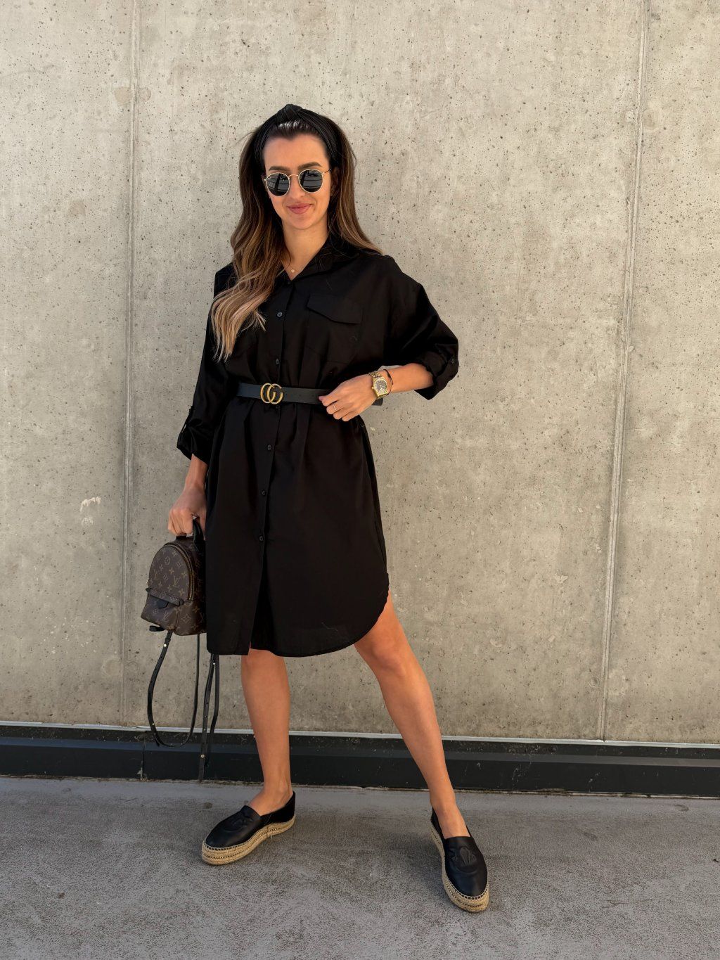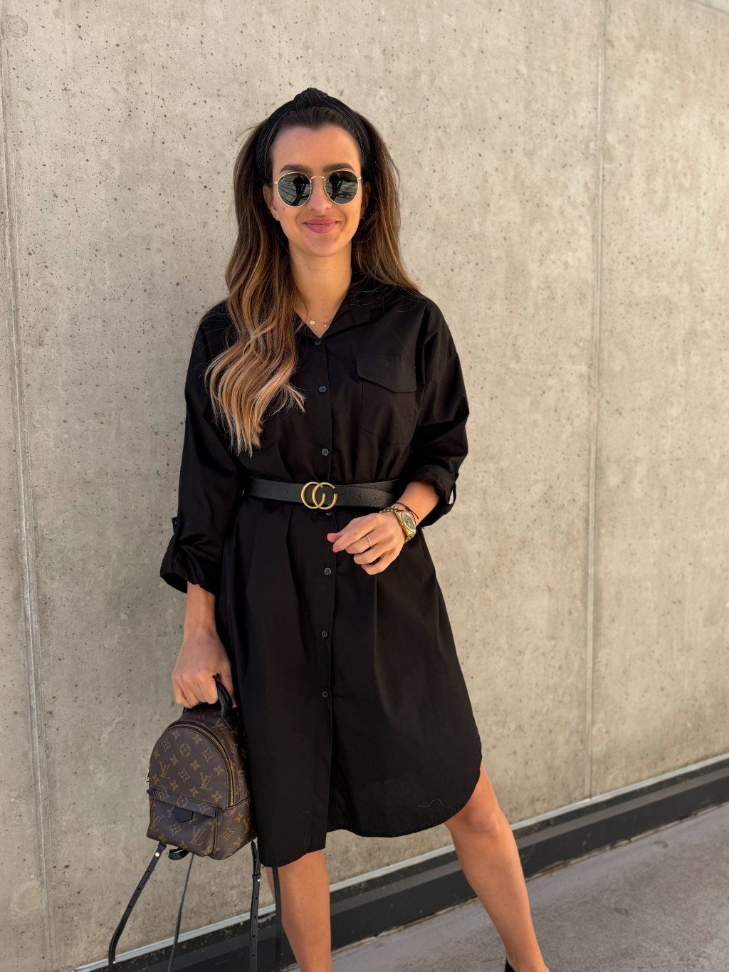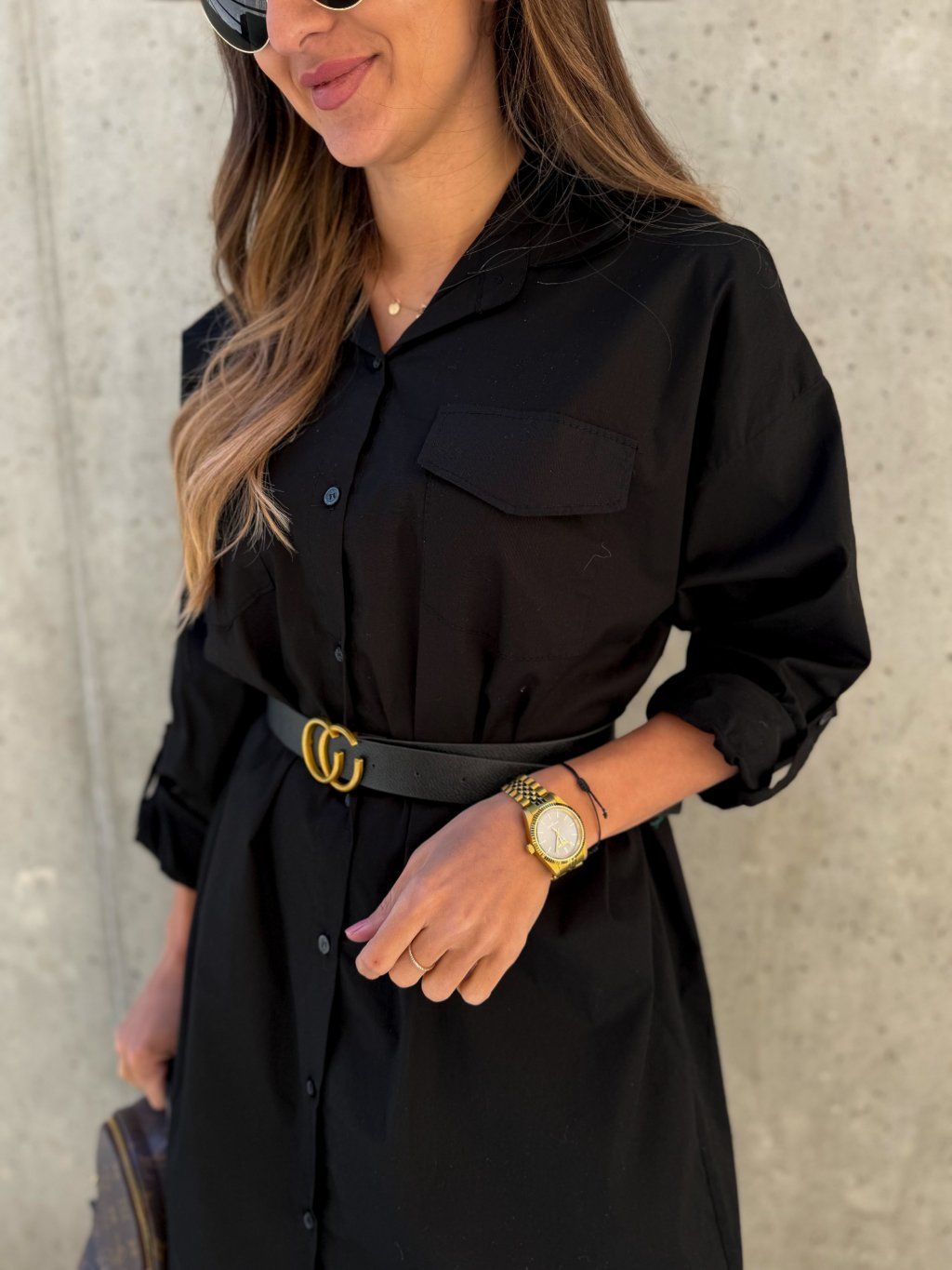 Luxusní košilové šaty rovného střihu s páskem. Pásek je nastavitelný, sedí tedy na více velikostí. Pásek můžete vyndat a šaty nosit jako oversized košili k riflím/legínám.