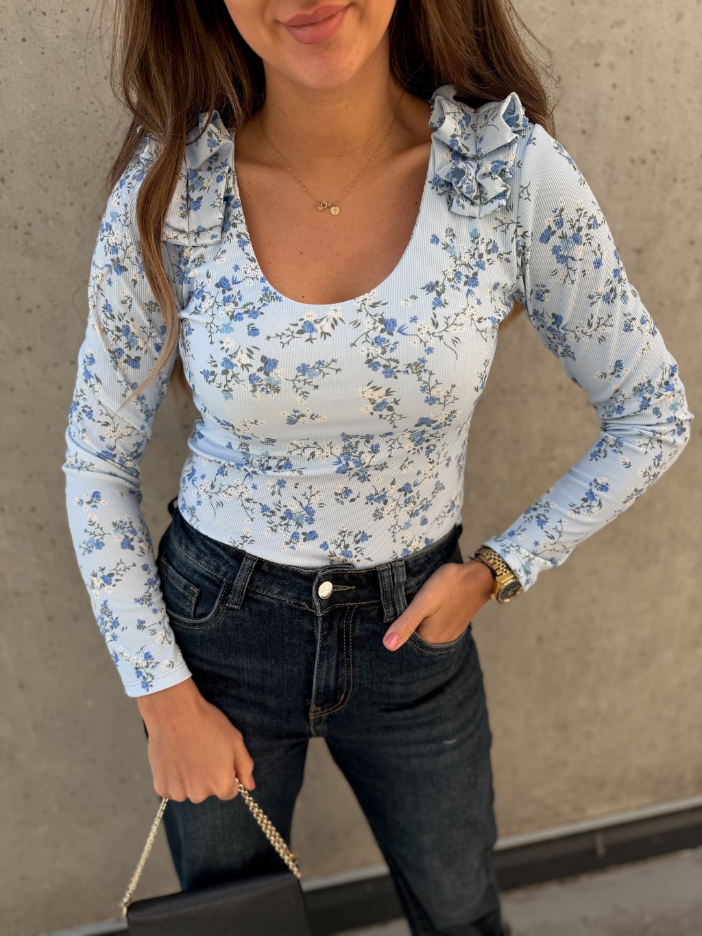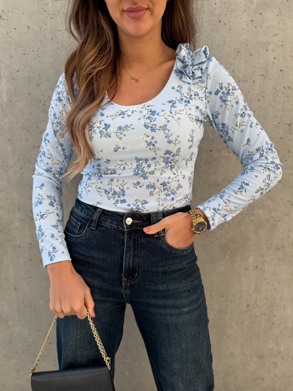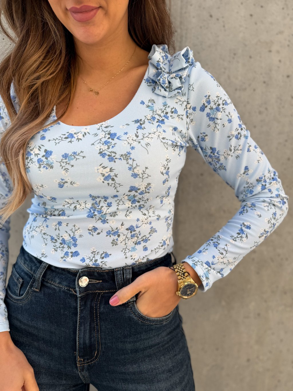 Květinový top s nařasením Blue