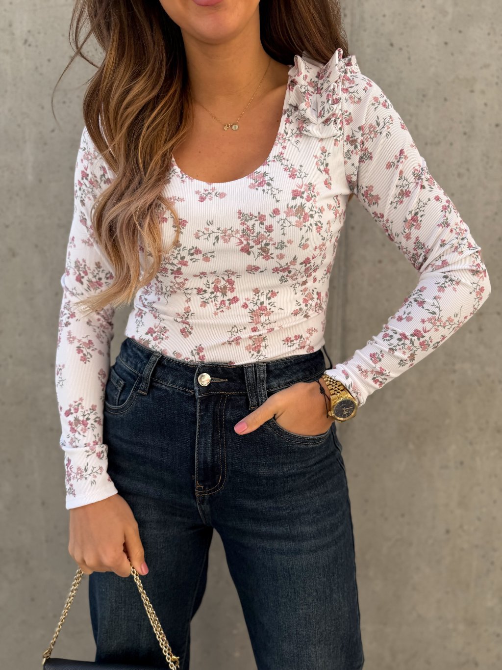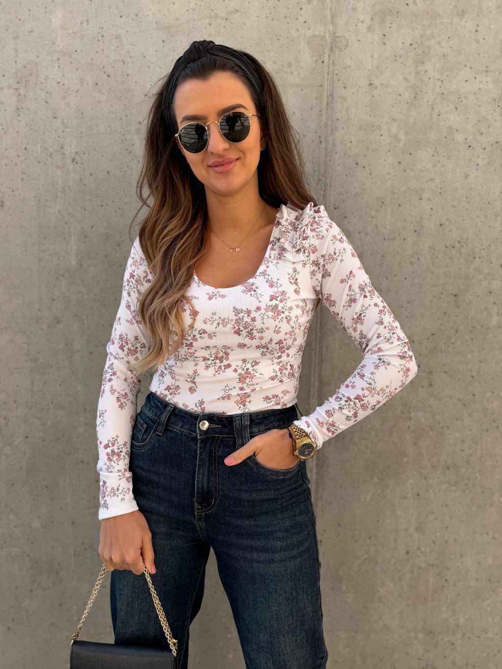 Dodejte svému outfitu svěží a romantický nádech. Květinový top s jemným nařasením zaujme na první pohled svým hravým vzorem a lichotivým střihem, který krásně zvýrazní siluetu. Nařasený detail dodává modelu lehkost a ženskost, díky čemuž se top stane nepřehlédnutelným prvkem vašeho šatníku.