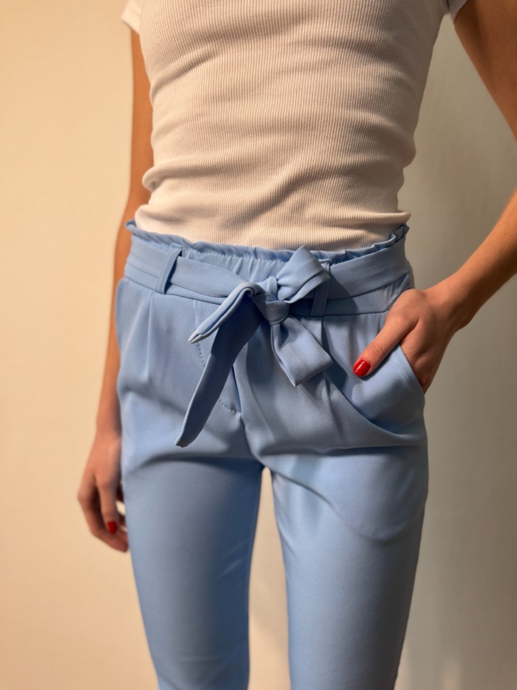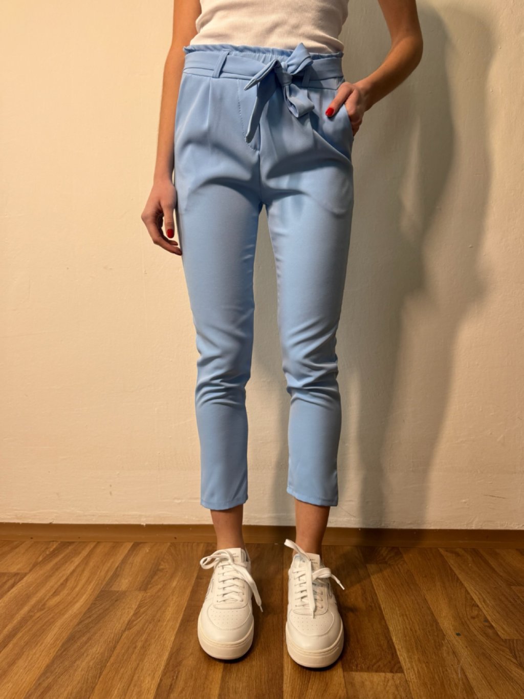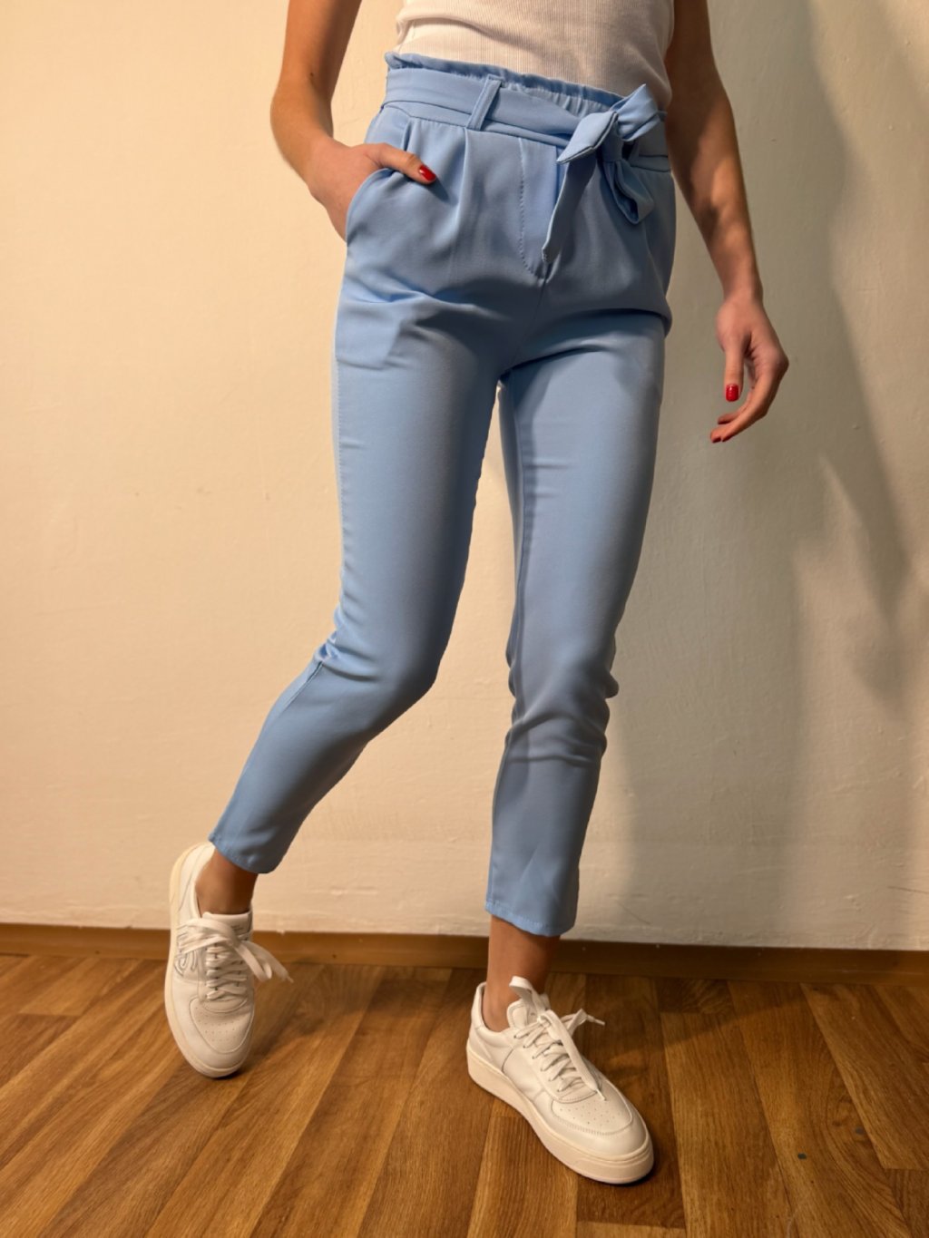 Stylové kalhoty z lehkého materiálu se zavazováním v pase. Příjemné a pohodlné, vhodné na každodenní nošení i speciální příležitosti.