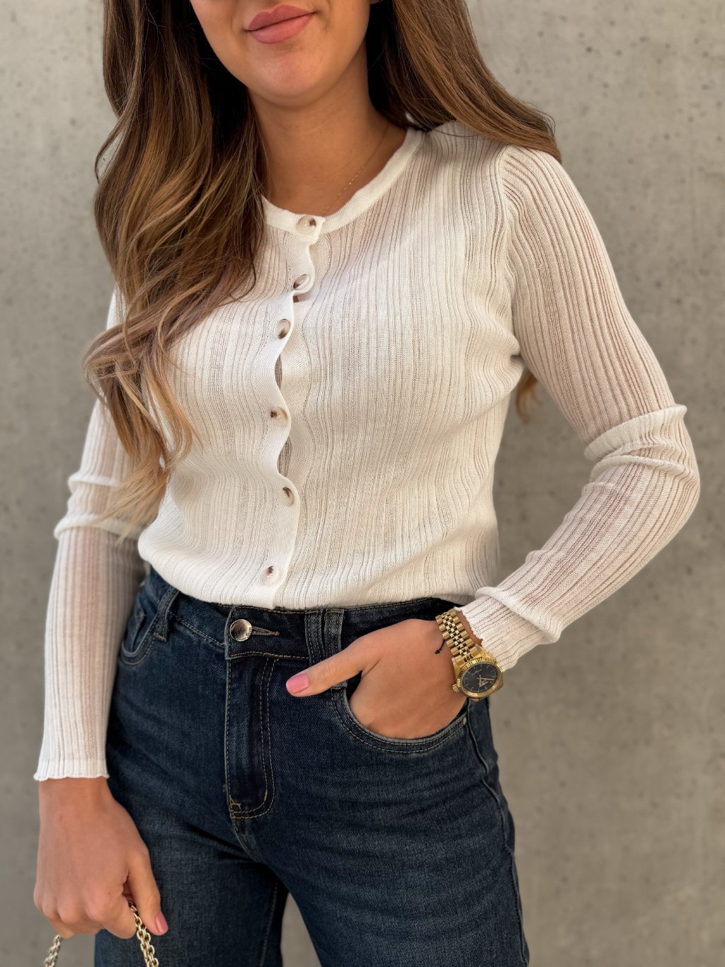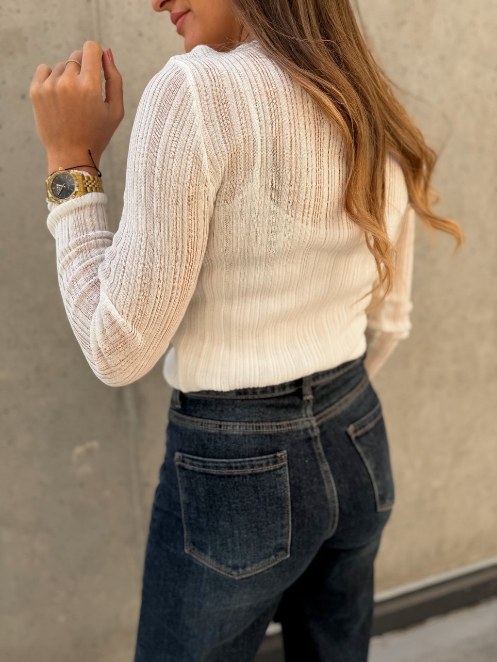 Stylový a zároveň pohodlný kousek, který dodá vašemu outfitu jemnou ženskost. Průhledný top je doplněn o lehké tílko s krajkou, které vytváří elegantní vrstvený efekt a zároveň zajišťuje příjemné nošení po celý den.