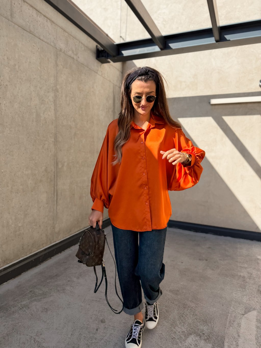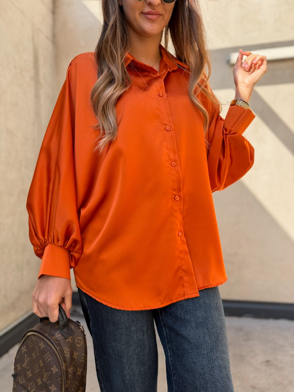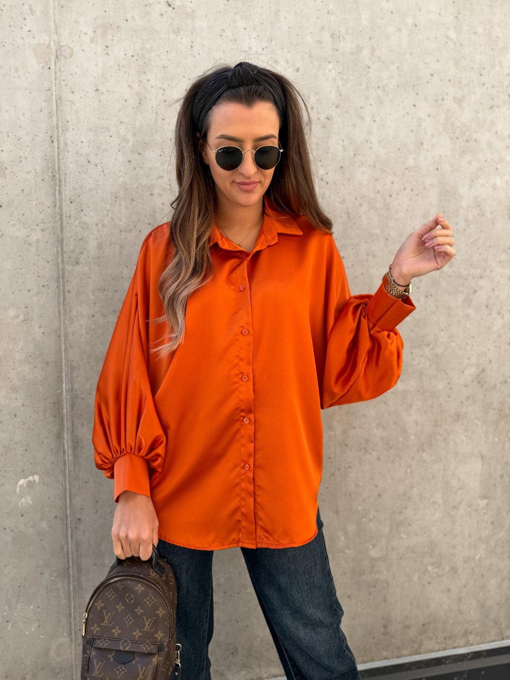 Saténová košile s balónovými rukávy Orange