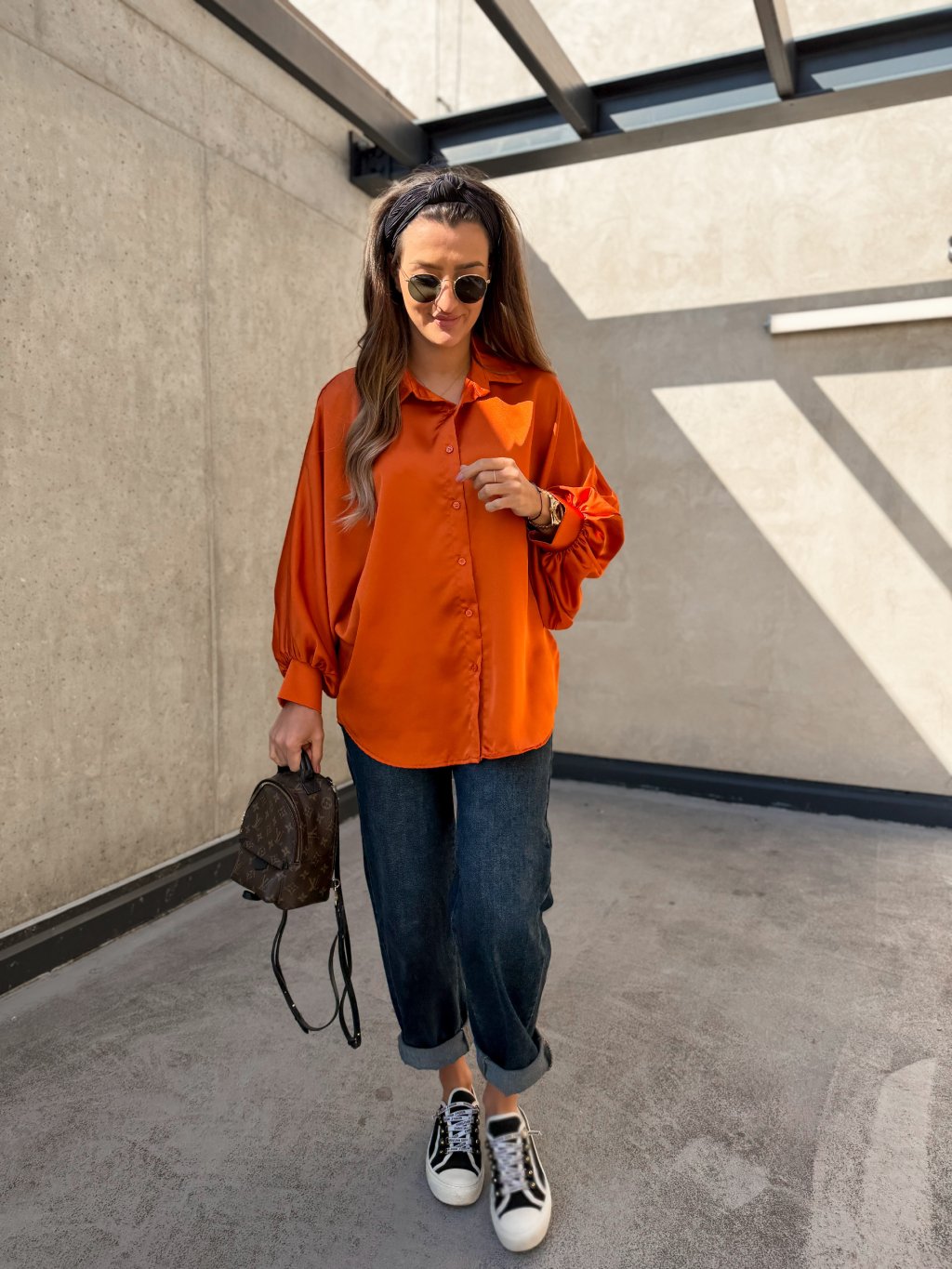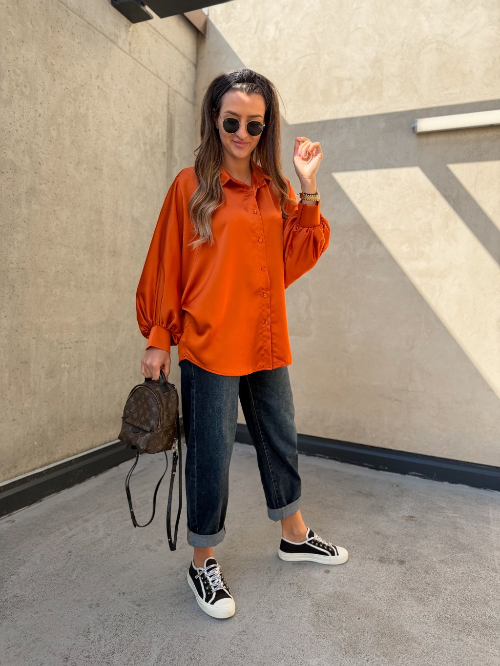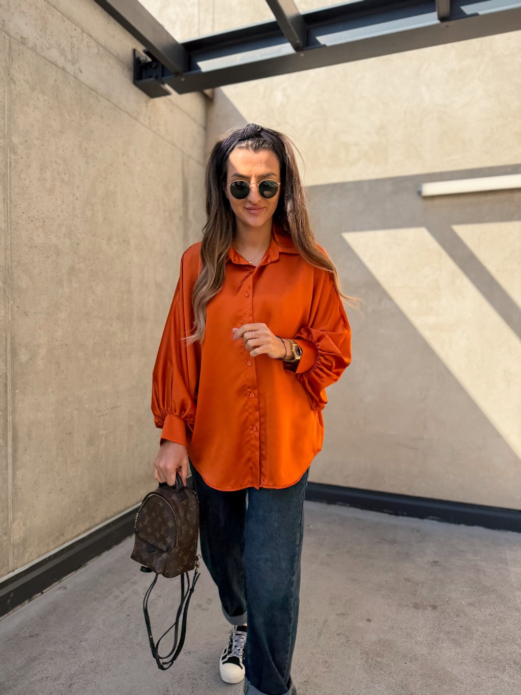 Saténová košile s balónovými rukávy Orange
