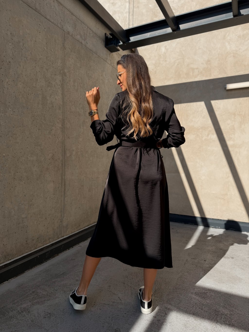Saténové midi šaty s páskem Black