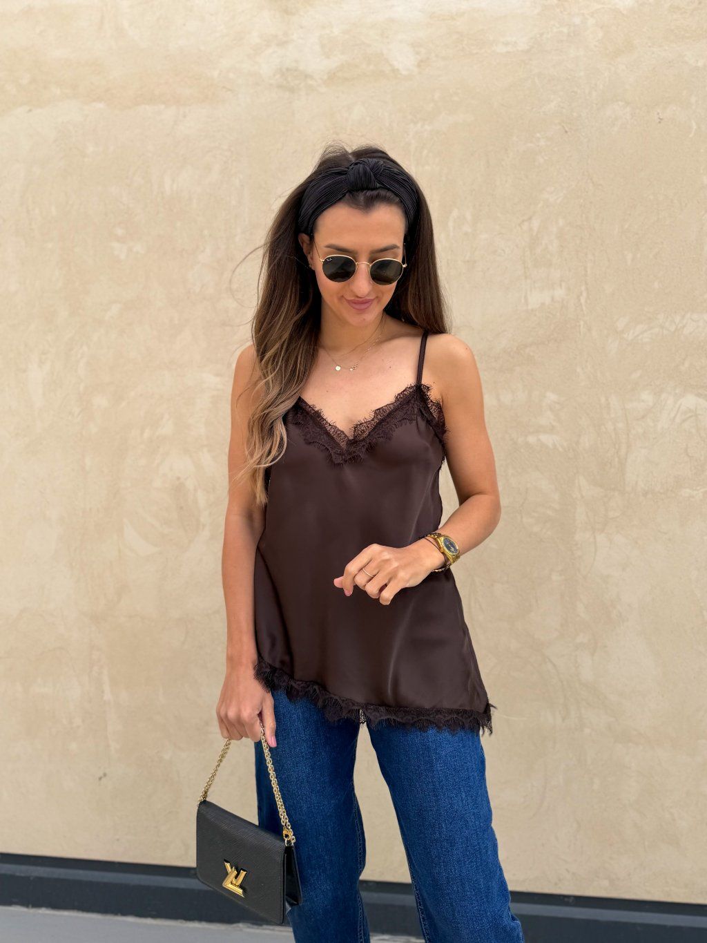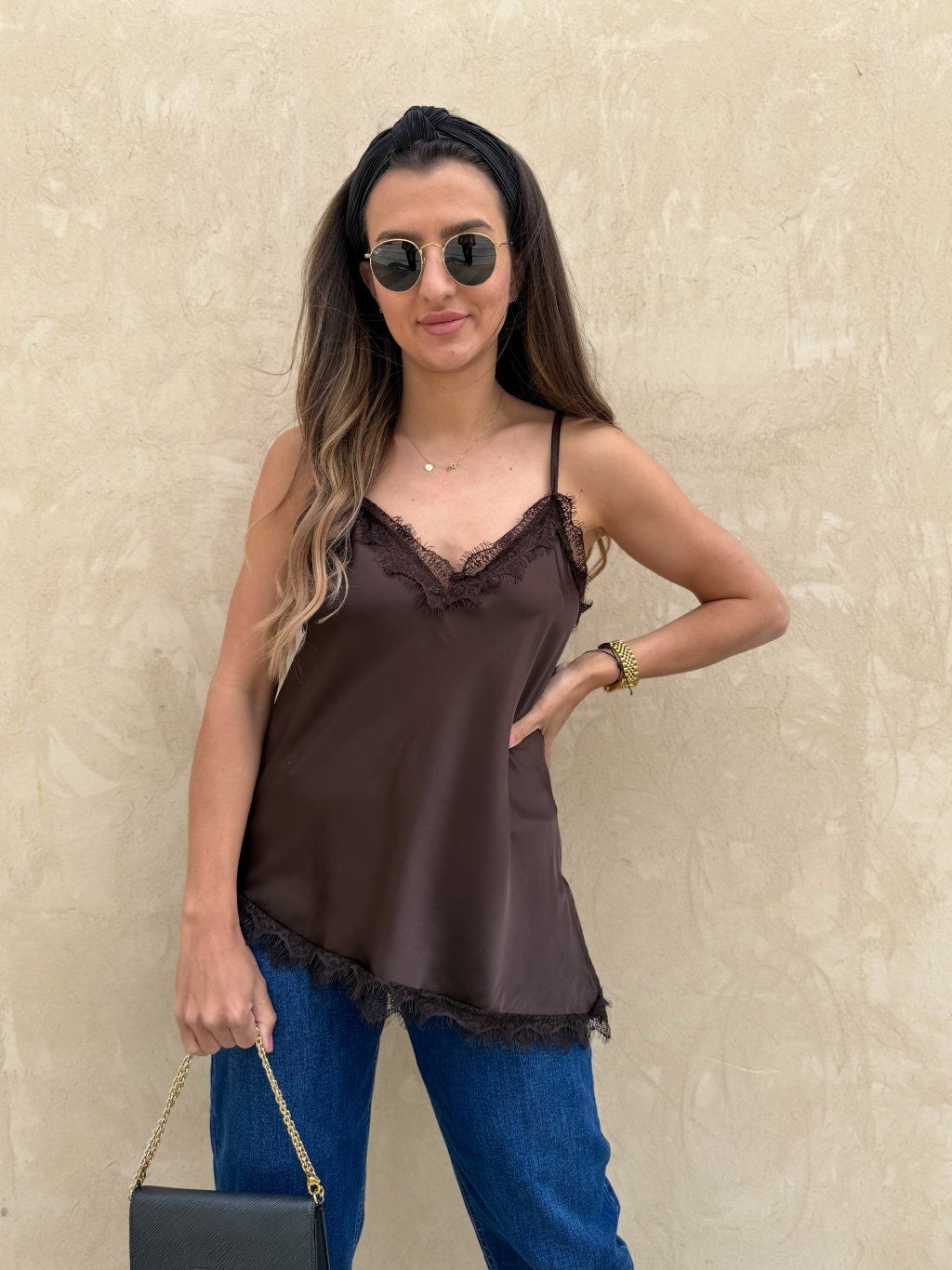 Saténové tílko s krajkou Chocolate