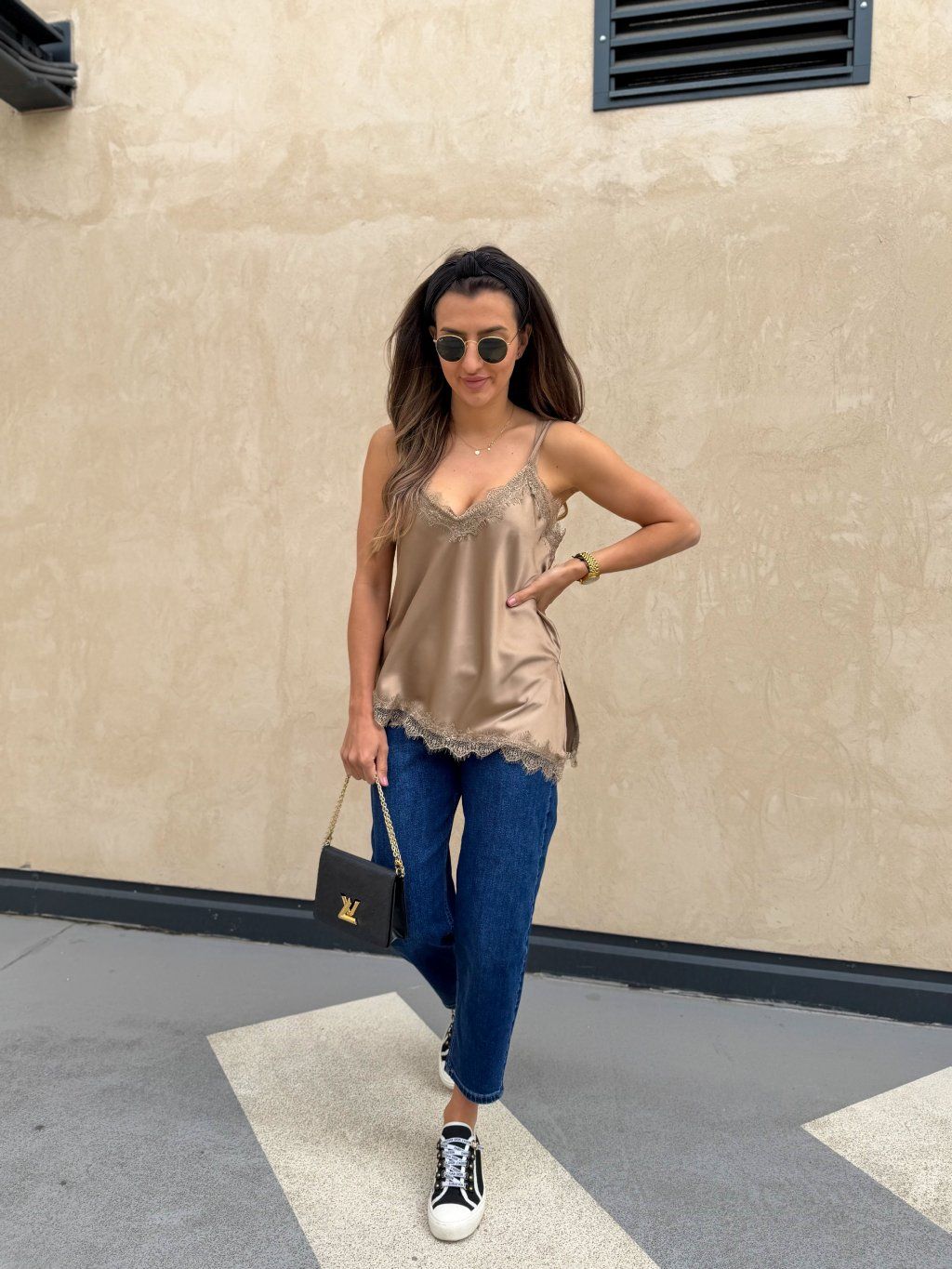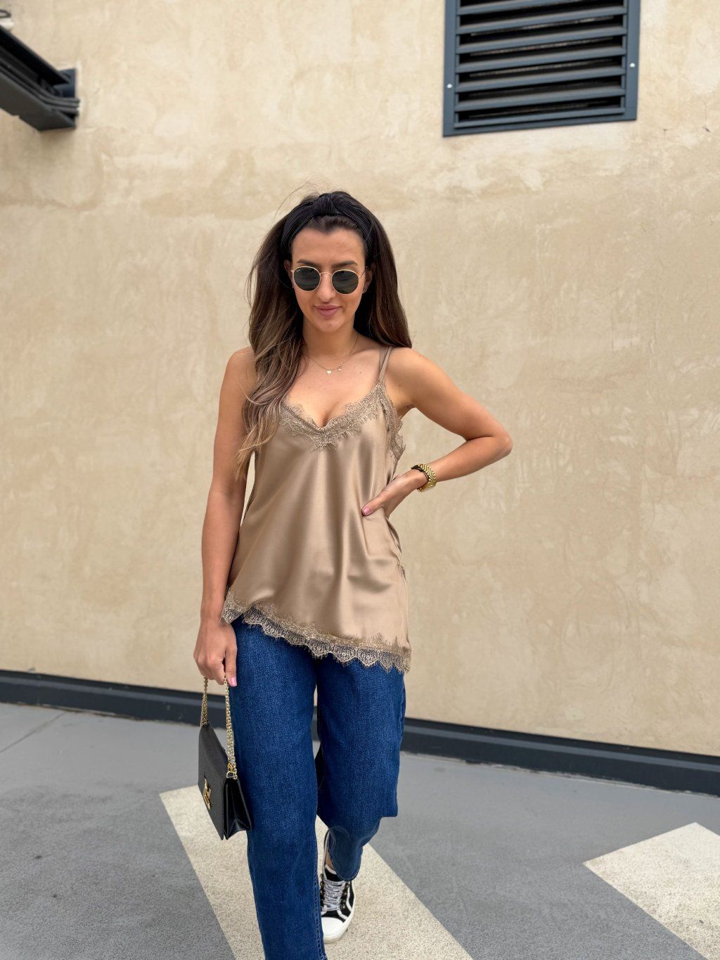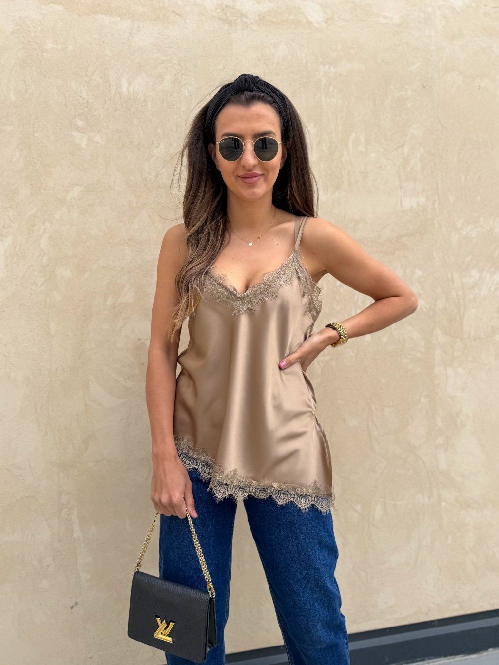 Saténové tílko s krajkou Gold