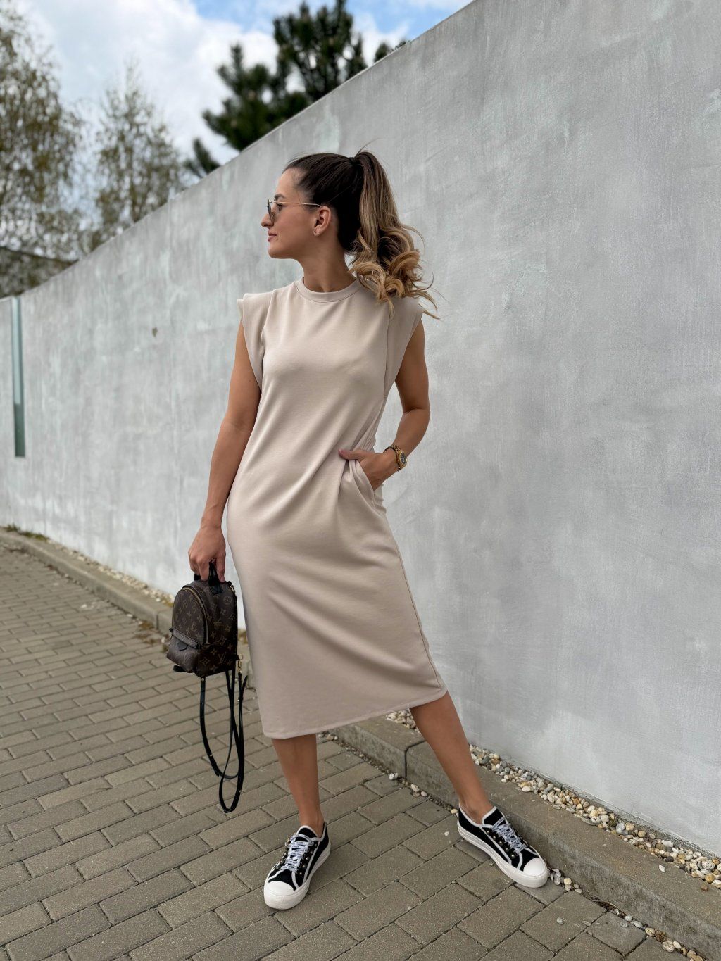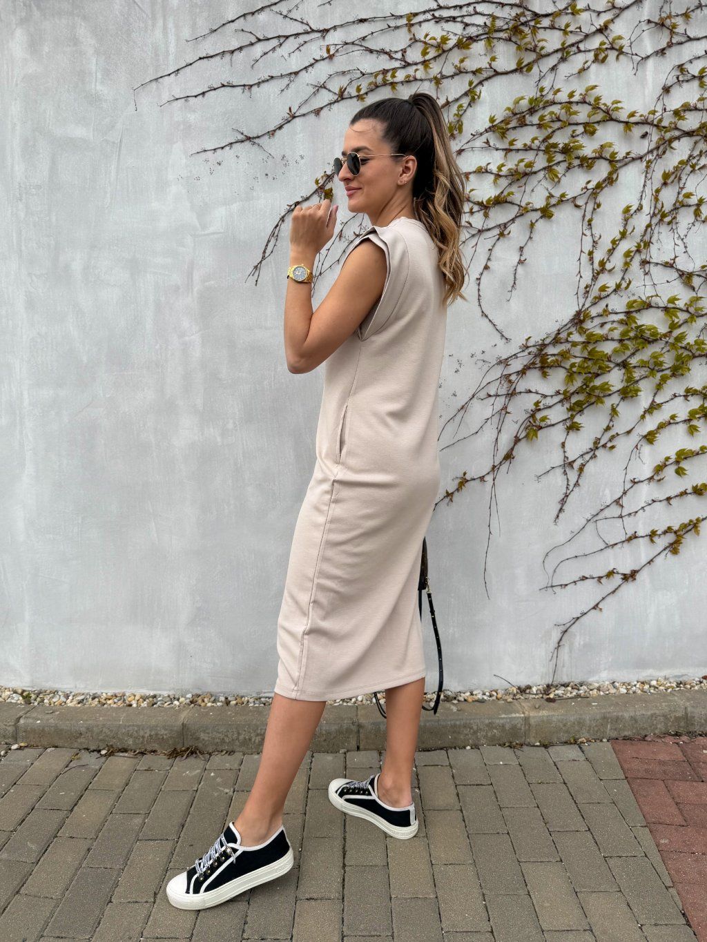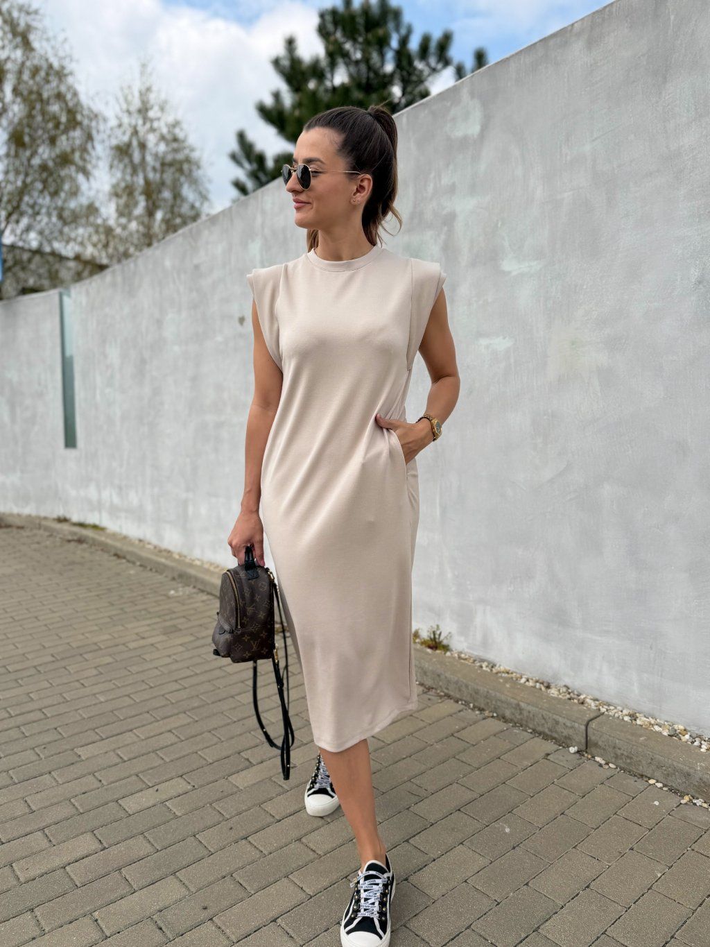 Tyto dámské šaty s křidélkovými rukávy a kapsami spojují pohodlí, eleganci i sportovní styl v jednom. Díky rovnému střihu a příjemnému materiálu se skvěle nosí během jara, léta i podzimu a snadno je sladíte jak s teniskami pro ležérní nebo sportovní vzhled, tak s elegantnější obuví pro elegantní outfit.