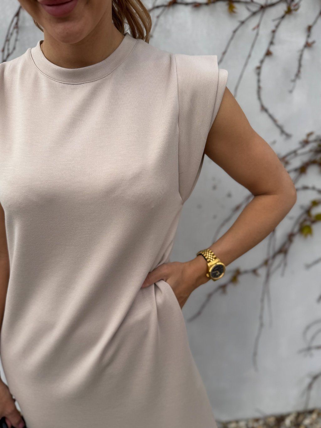 Šaty Carol s křidélkovými rukávy Beige