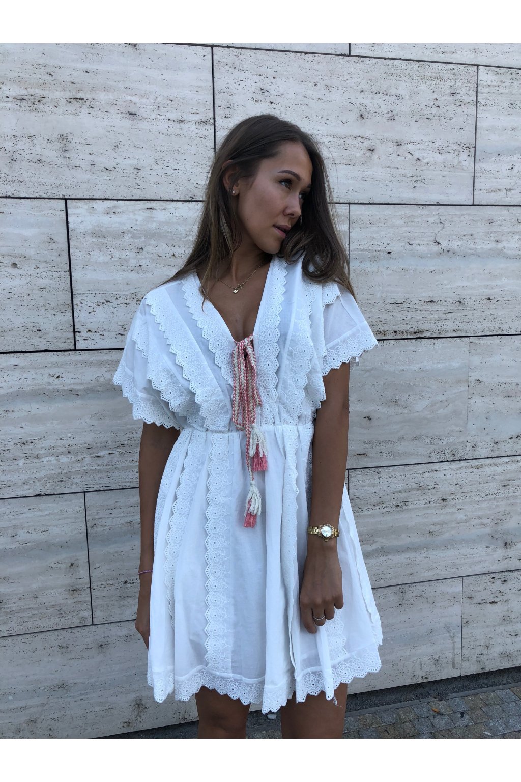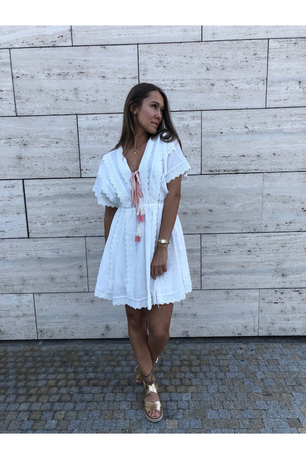 Úžasné šaty Laura v barvě Ecru. Šaty mají gumu v pase. Vypadají skvěle na opálené pokožce.