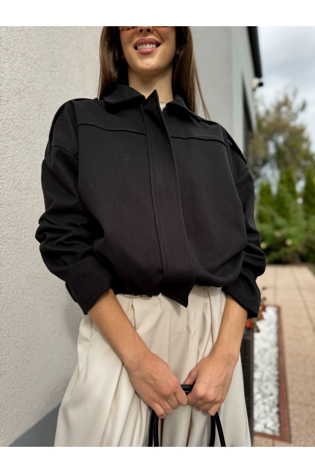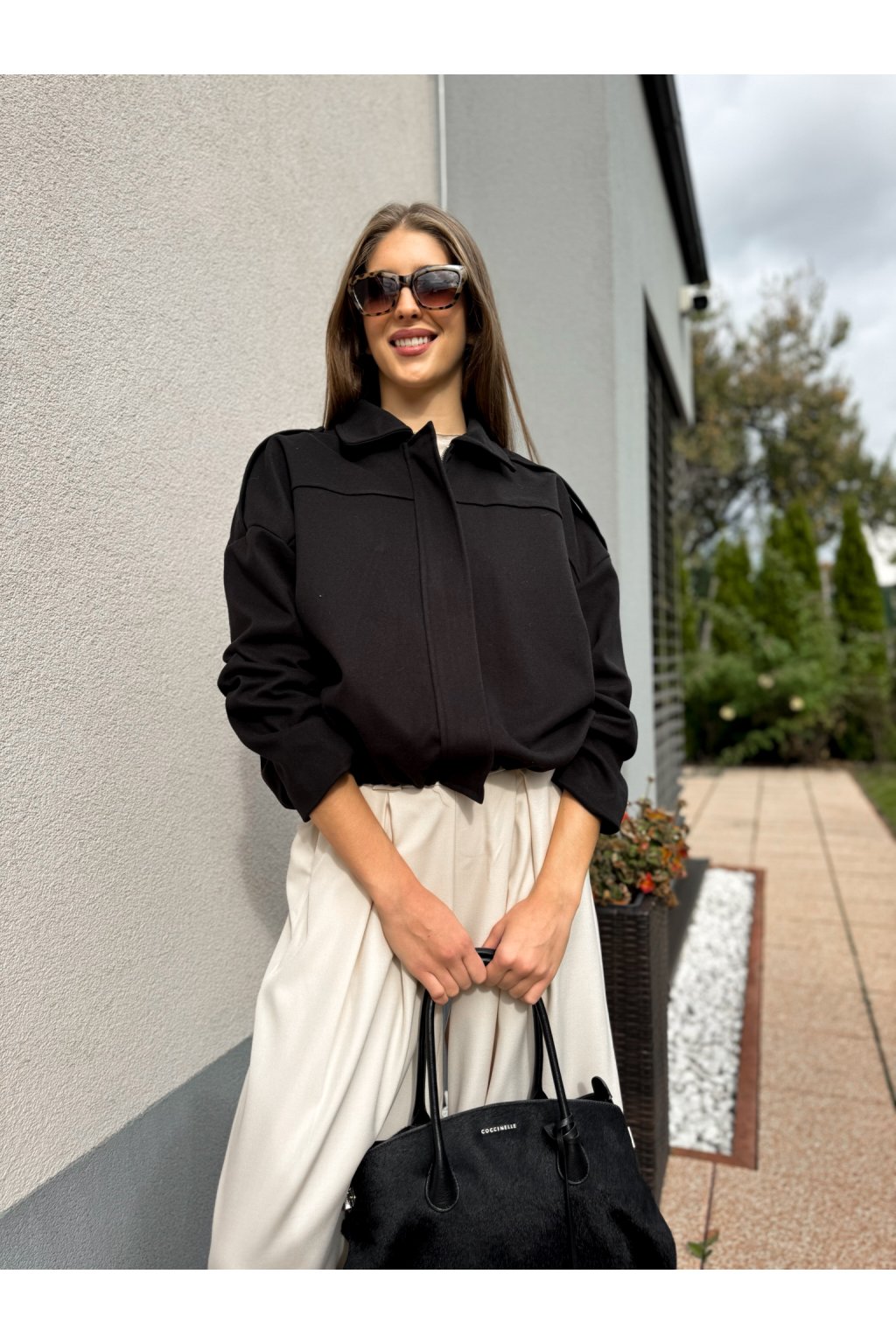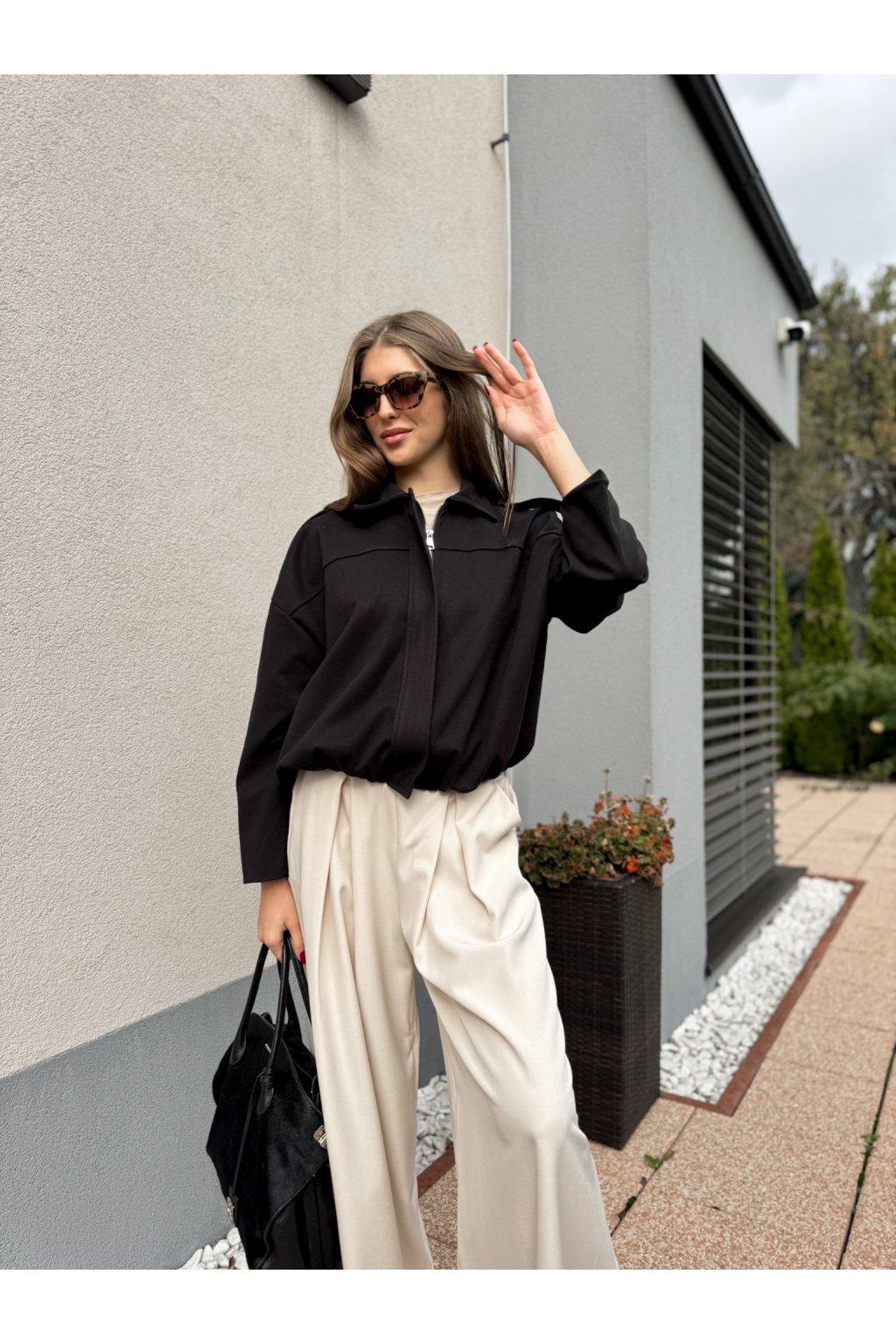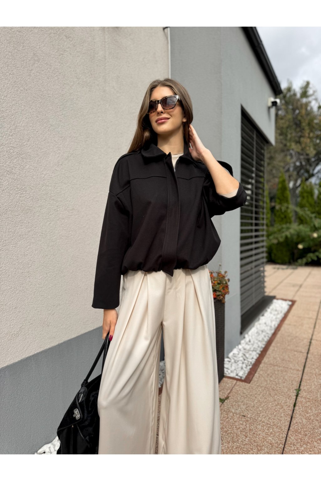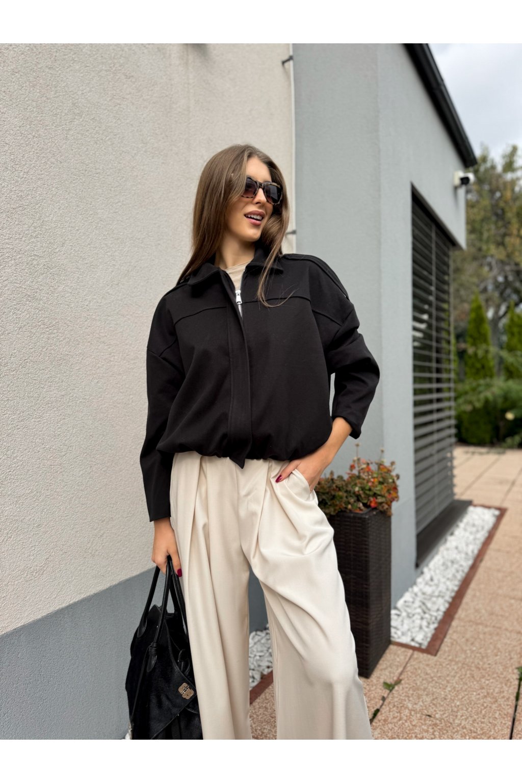 Stylový podzimní bomber vyrobený v Itálii z jemného, měkkého a příjemného materiálu. Zapíná se na zip a je doplněn stylovým límečkem a gumou v pase pro pohodlné nošení. Má lehce širší oversize střih, který dodává moderní a pohodlný look. Perfektní volba pro každodenní elegantní i ležérní podzimní outfity.