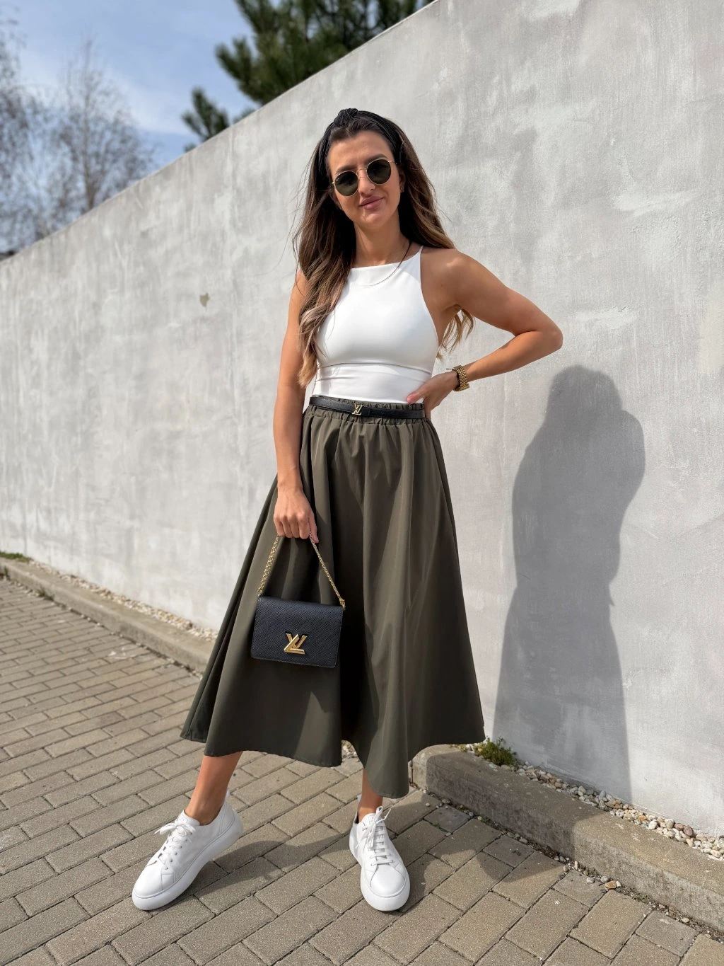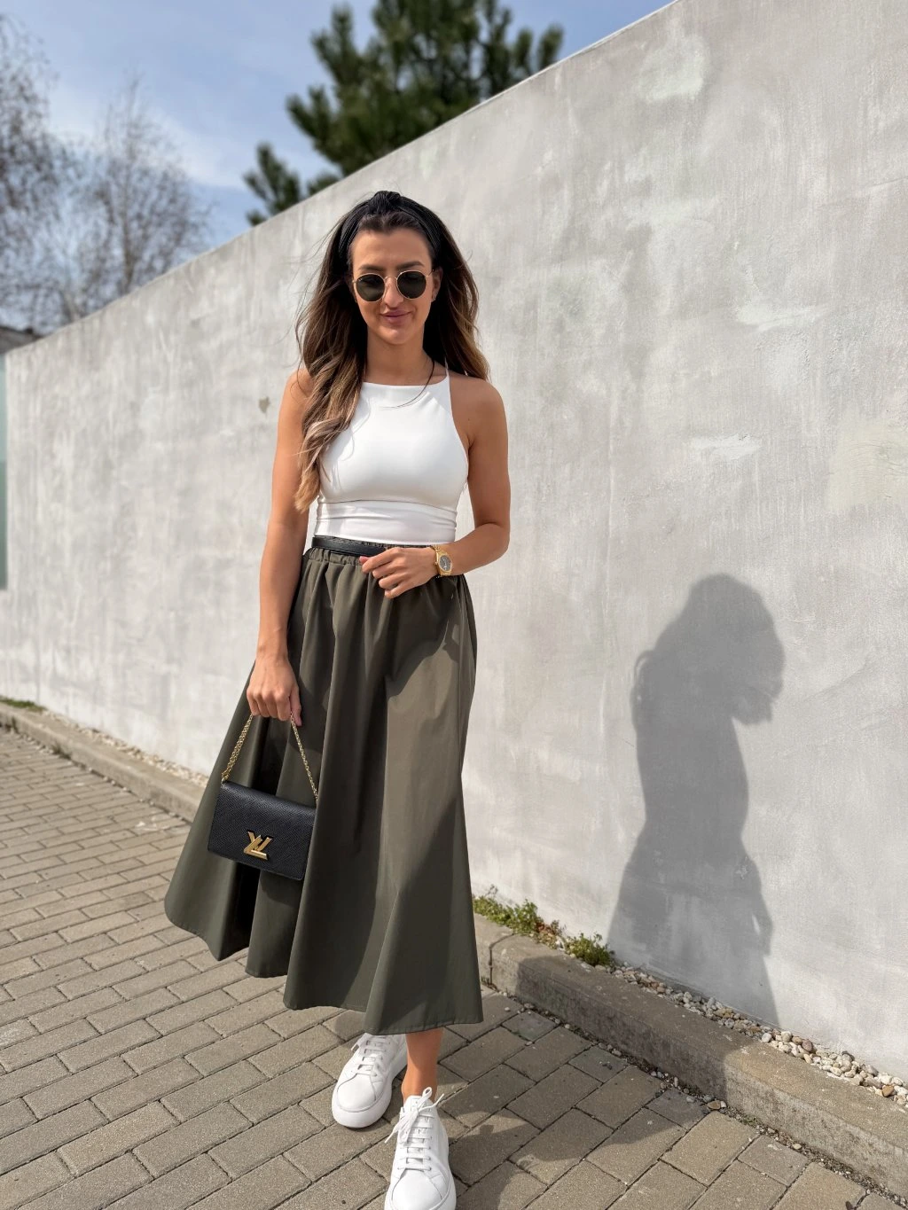 Luxusní sukně z pevného materiálu s gumou v pase. Můžete využít na více způsobů. Jak na klasické běžné nošení, tak třeba i na svatby a významnější události. Tento produkt byl vybrán pečlivě, s láskou a důrazem na vysokou kvalitu materiálu.