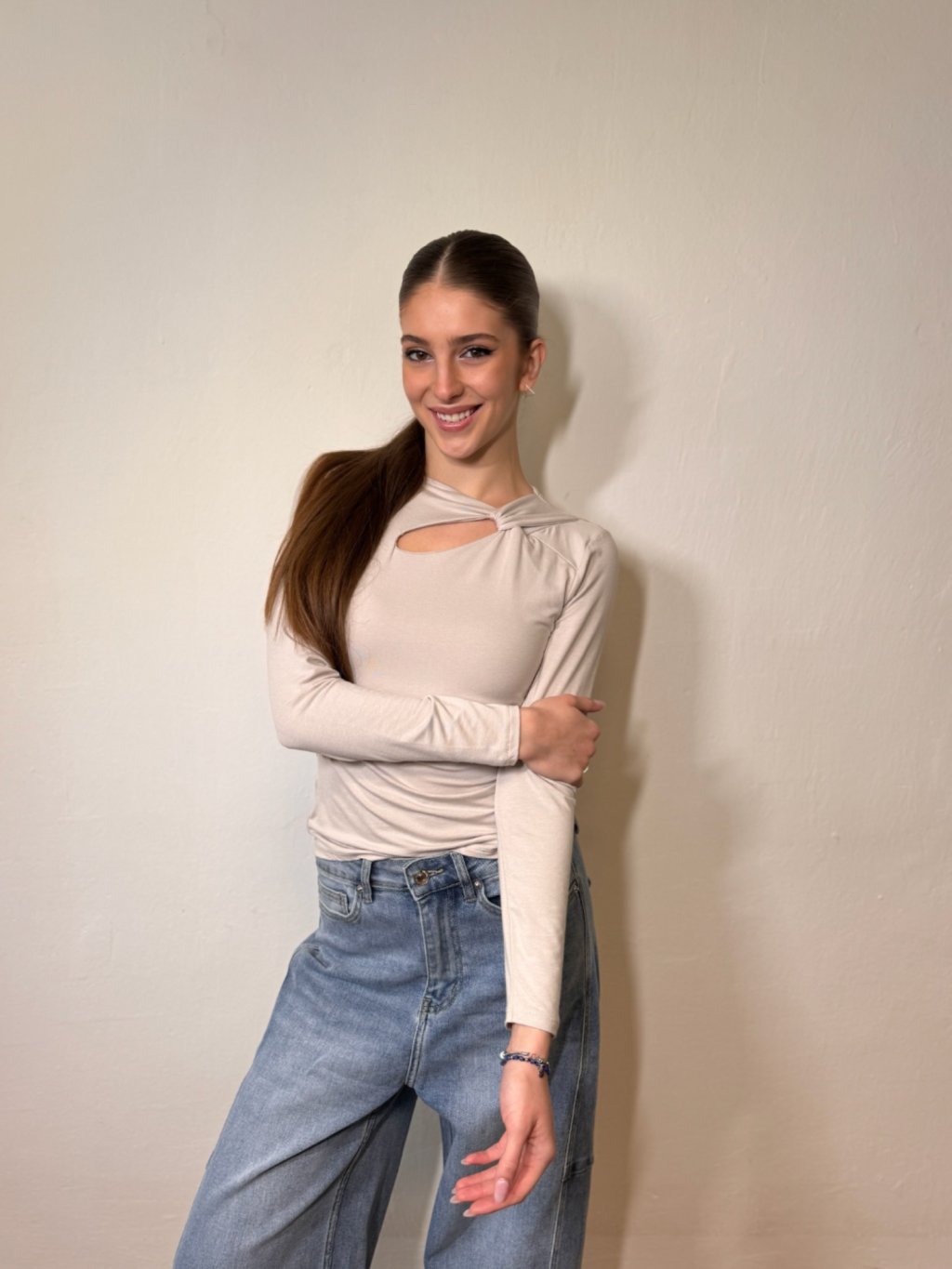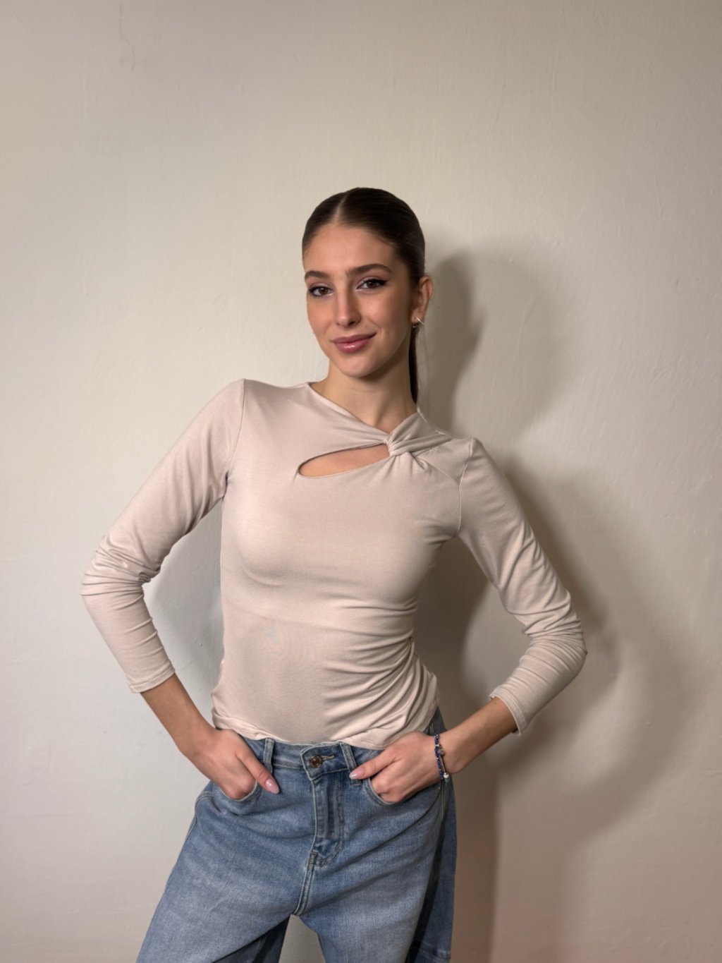 Dámský ležérní top s elegantním a zajímavým výstřihem. Tento kousek z příjemného materiálu ozvláštní každý váš outfit. Pokud se chcete cítit příjemně, pohodlně a zároveň žensky, je to ten pravý kousek pro vás.