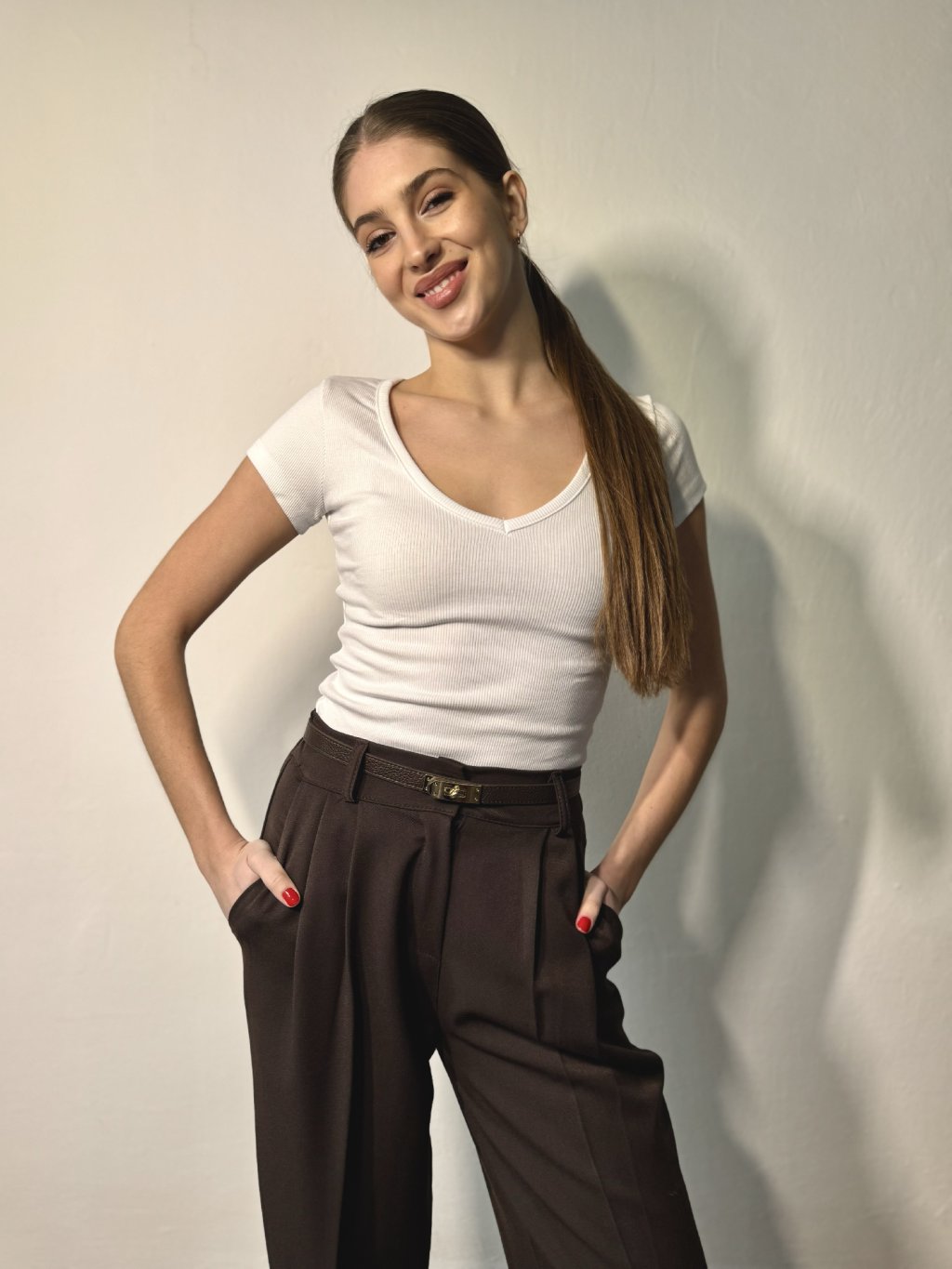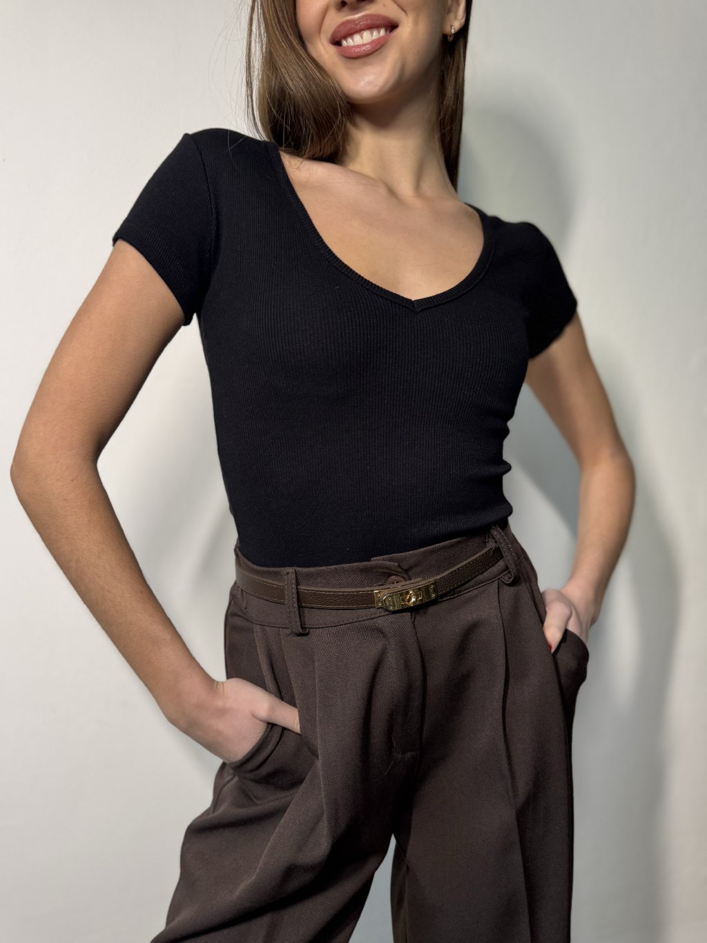 Trendy a stylové dámské žebrované tričko s krátkým rukávem a výstřihem do V. Univerzální kousek v bílé nebo černé barvě se hodí ke každému outfitu. Vybírejte ze dvou variant velikostí, materiál je díky podílu elastanu pružný a krásně se přizpůsobí vaší postavě.