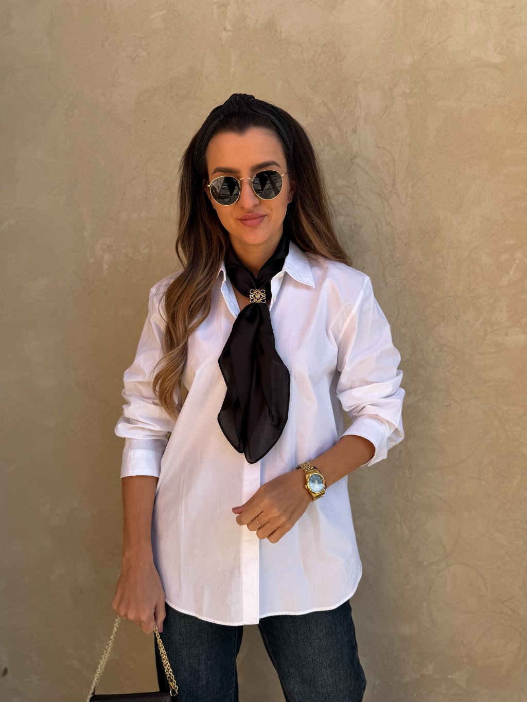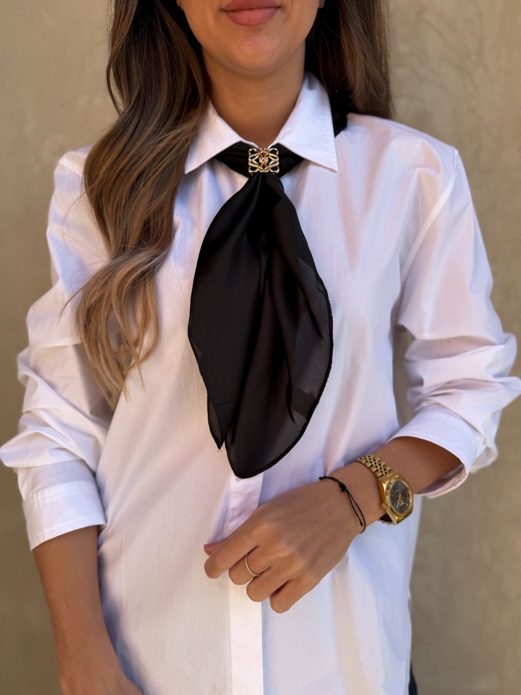 Dodejte svému outfitu nádech elegance s touto jemnou zlatou sponou na šátek. Praktický provlékací design umožňuje snadné a rychlé upevnění hedvábného šátku bez složitého vázání. Stačí šátek jednoduše provléknout a vytvořit stylový detail, který okamžitě oživí Váš outfit.
